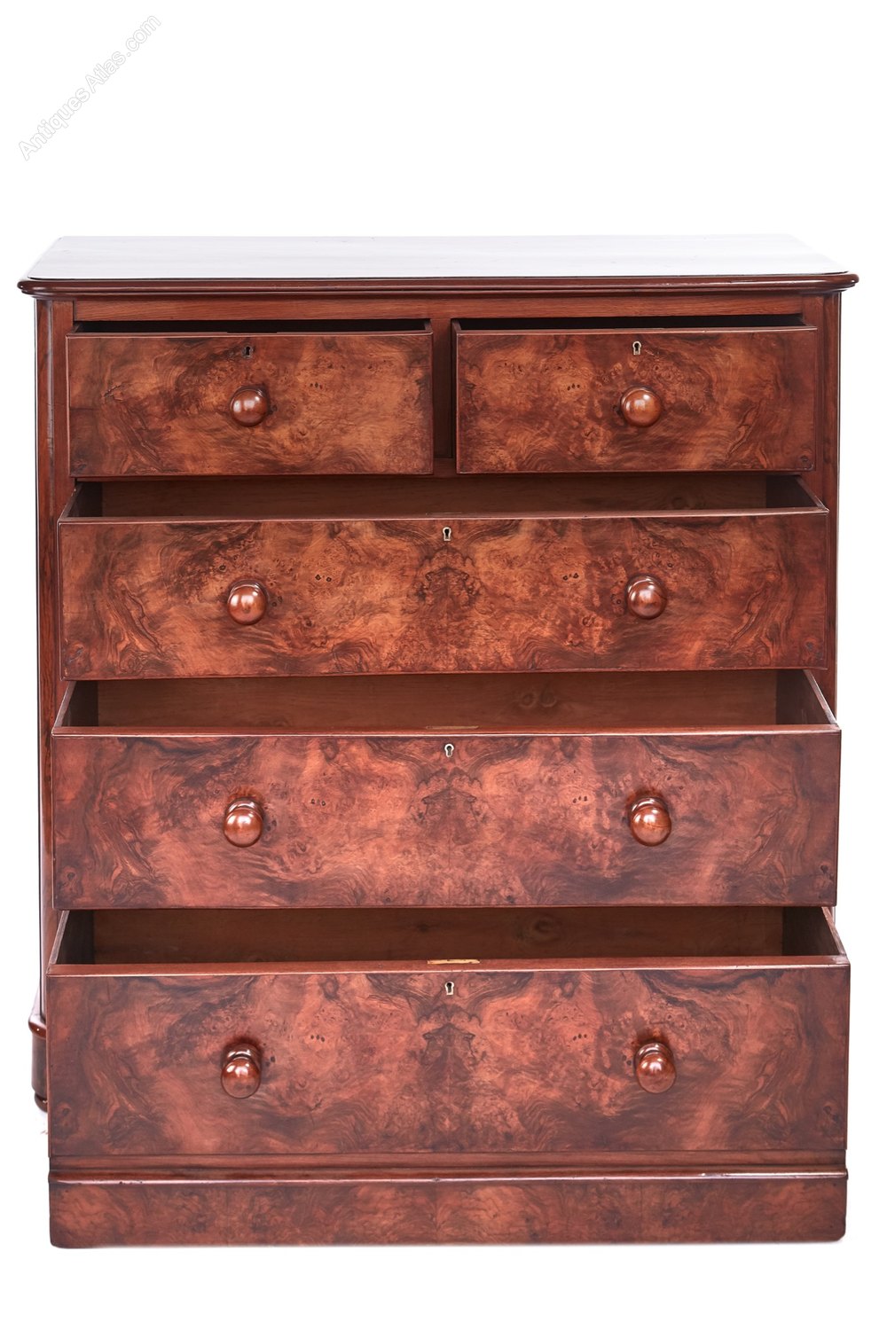 5 drawers with figured walnut veneers,