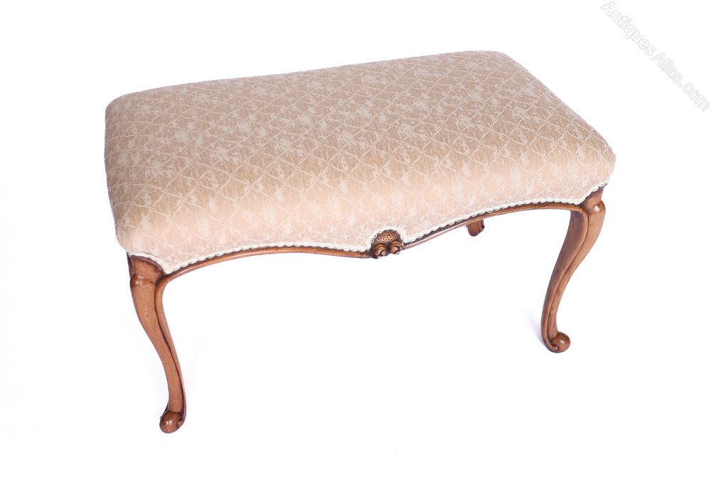 A Mid-Victorian Walnut Framed Cabriole Leg Stool