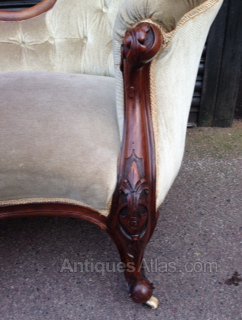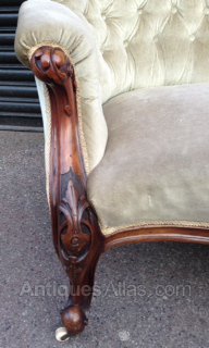 Victorian walnut framed settee. Good quality carved cabriolet legs, excellent condition and on original pot castors.