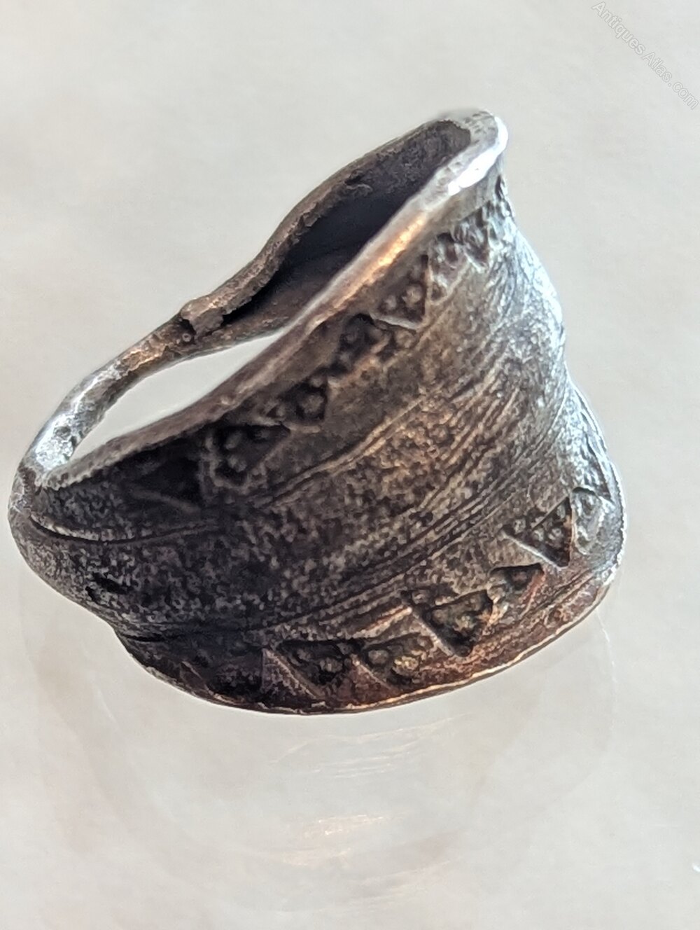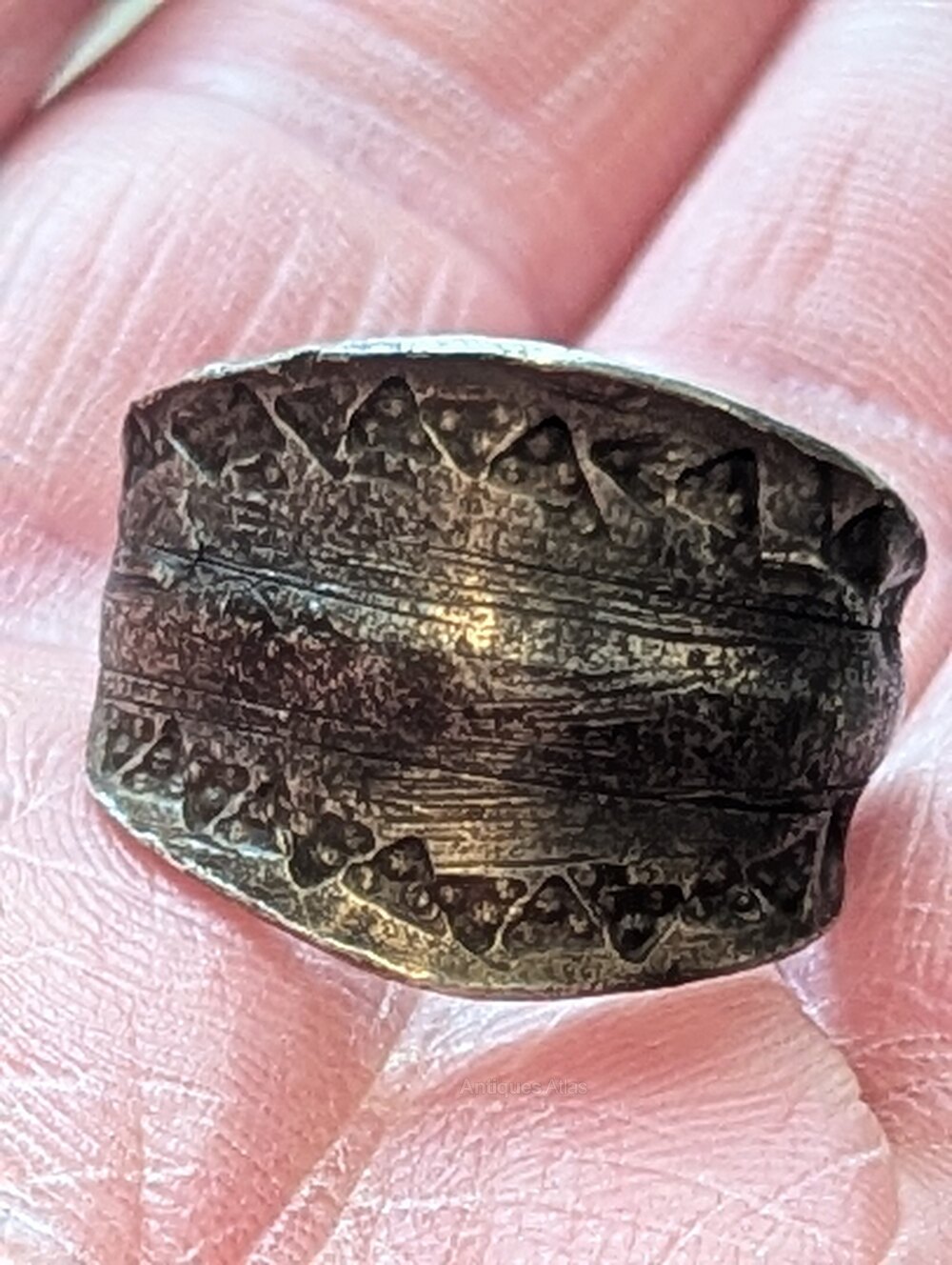 Original and wearable Viking silver ring with typical triple pelleted triangle decoration. Another private collection piece so hard to pin down a concrete Provence.