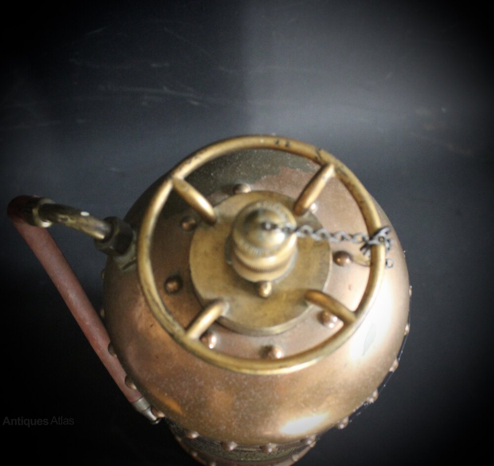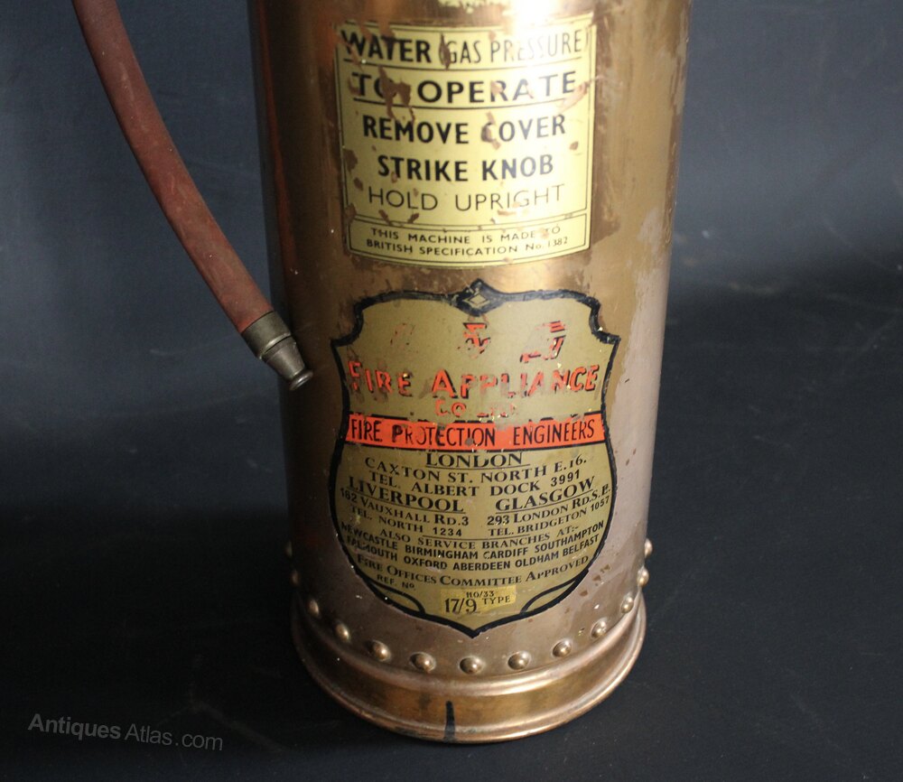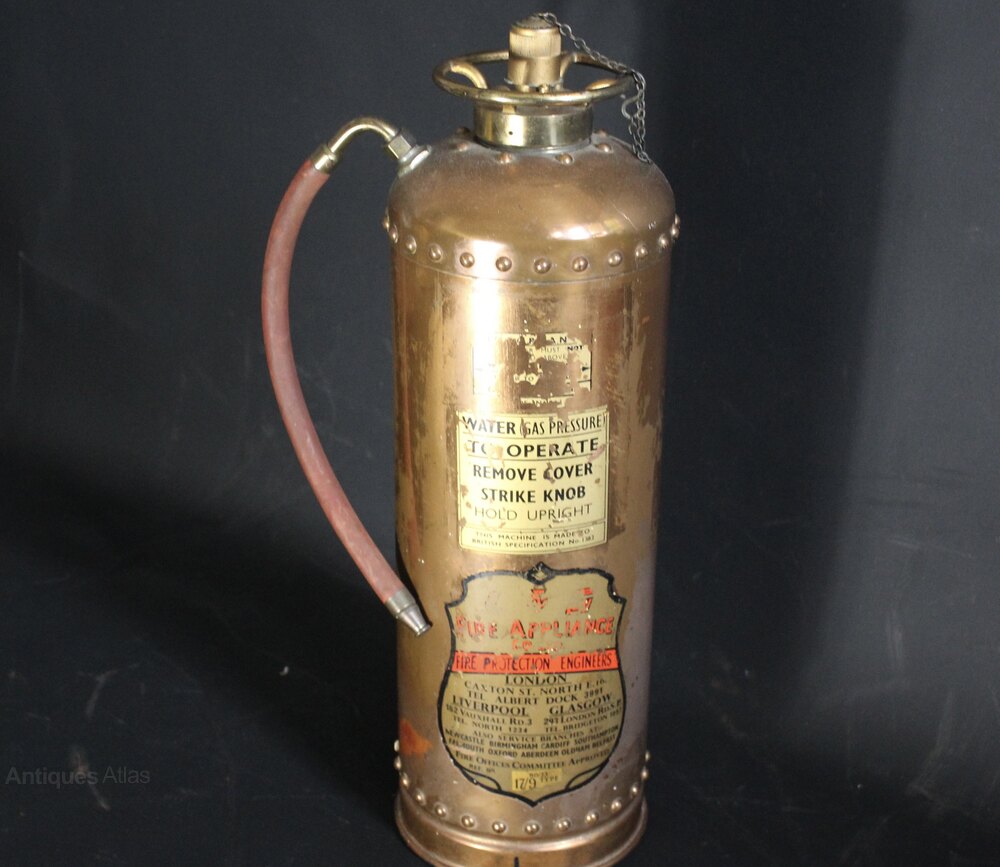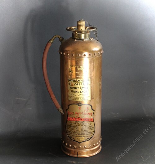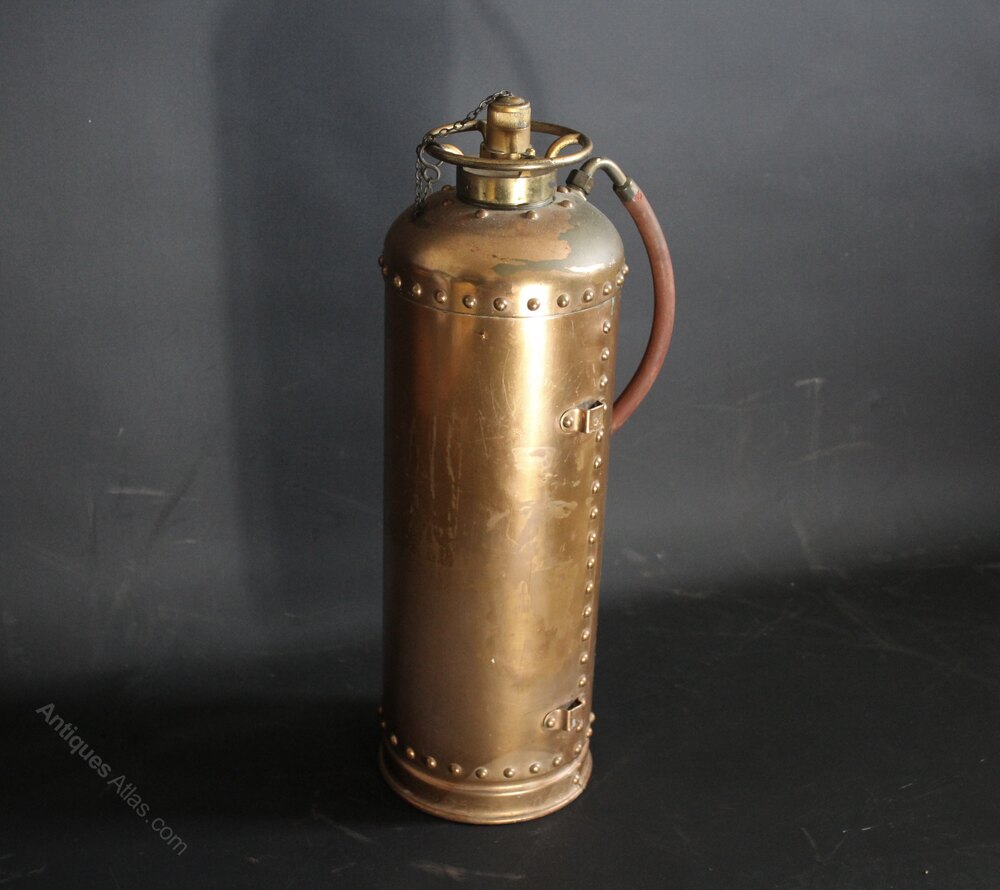 Vintage British copper fire extinguisher.