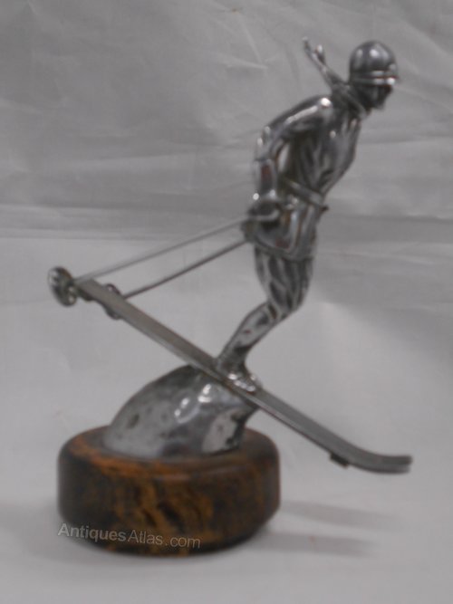 original Riley ski lady car mascot, silver plated, Riley Skilady rd 759577 stamped on back of base,