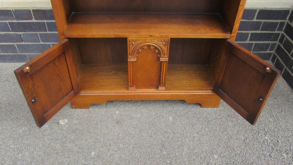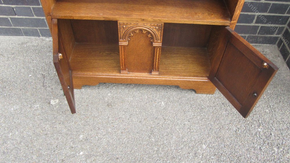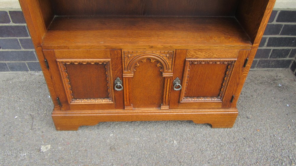 Vintage Carved Oak Open Bookcase