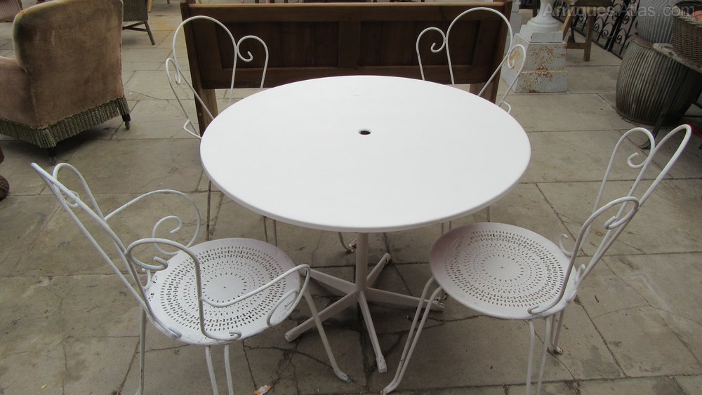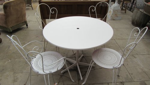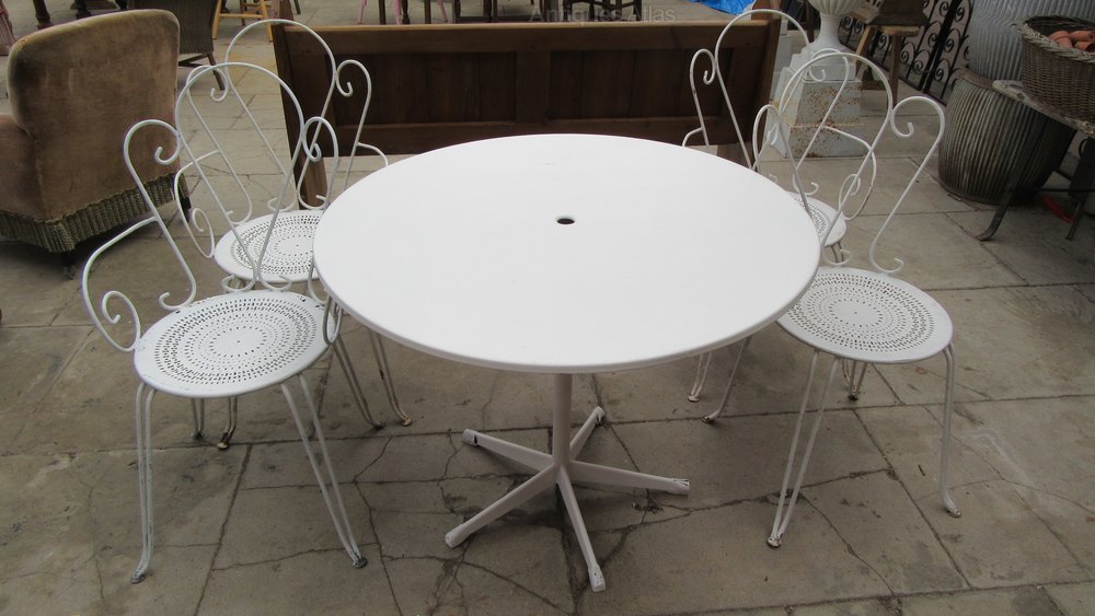 Vintage French Garden Set Three Armchairs and one Upright Table 74 cm high x 95 cm diameter