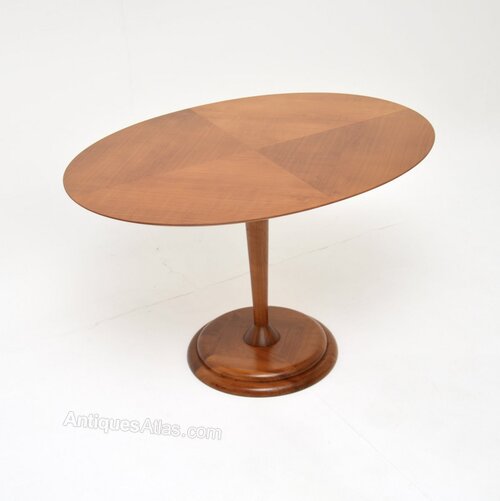 This is of superb quality and has a gorgeous design. The oval top has chamfered edges and sits on a central column, terminating in a beautifully made solid walnut base.