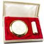 The compact is suitable for use with modern loose face powder or as a handbag mirror.