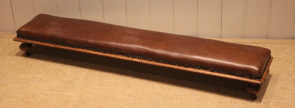 Walnut & Leather Long Foot Stool