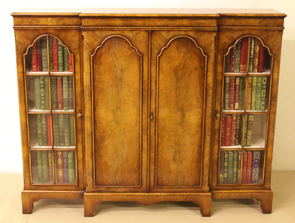 Large Breakfront Walnut Bookcase by Maple & Co.
