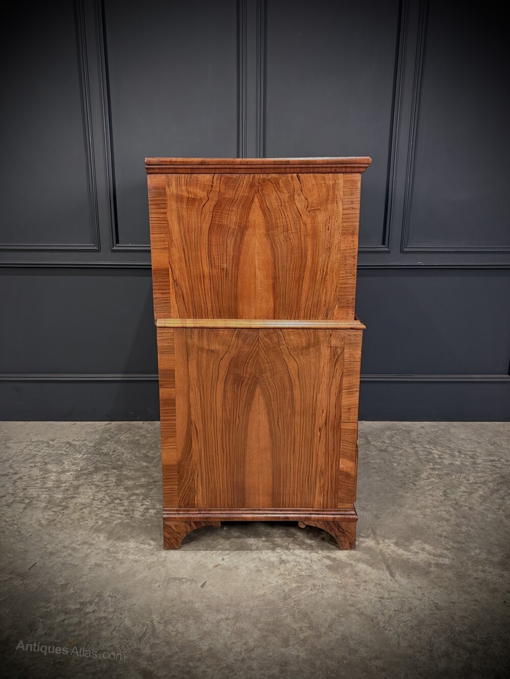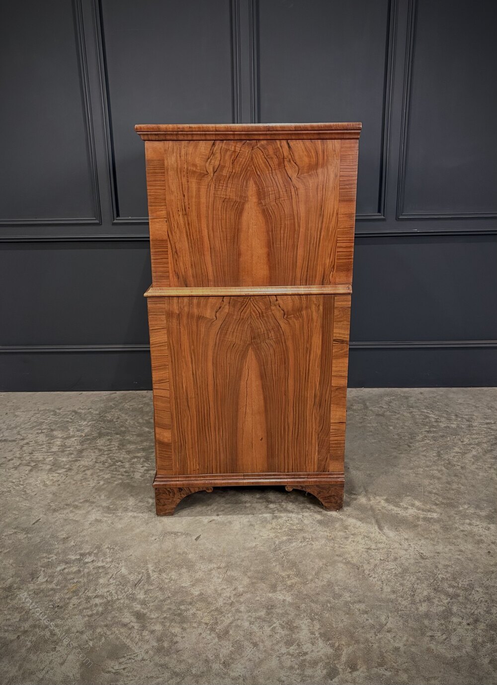 Elegant Queen Anne style walnut cabinet, circa 1920, presented in two sections.