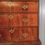 The legs are solid walnut and the carcass is decorated with tram-line moulding. The sides are veneered walnut and the drawers are oak lined with pine bottoms.