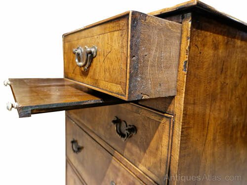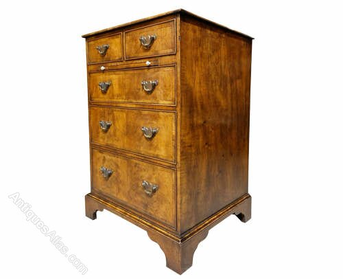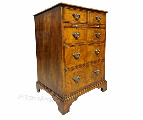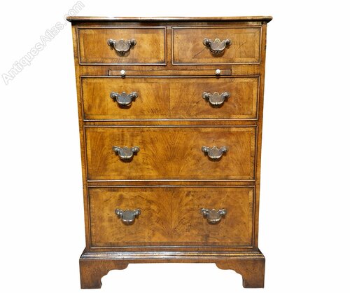 Small Walnut cross banded chest with slide