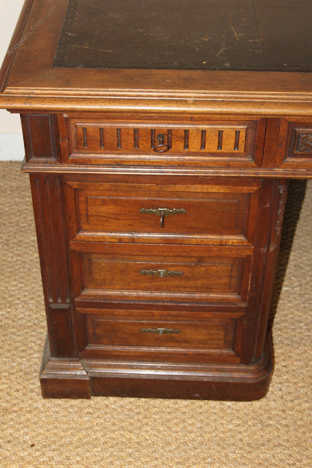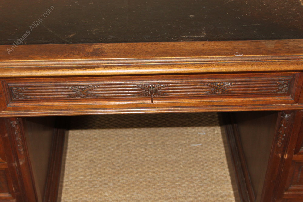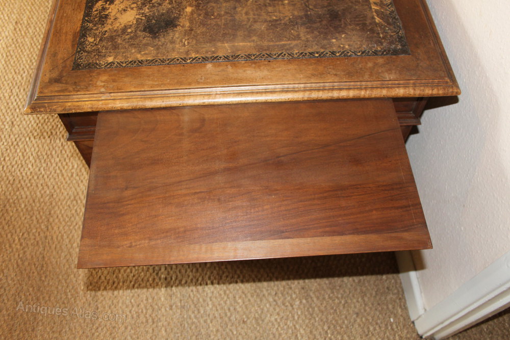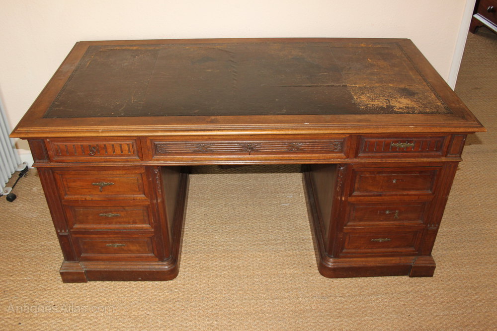 Large late 19th century walnut pedestal desk