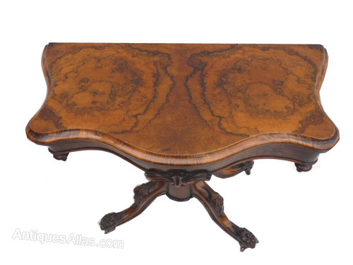 Victorian Burr Walnut Serpentine Card Table