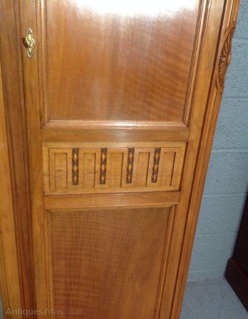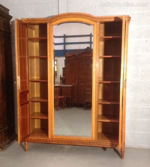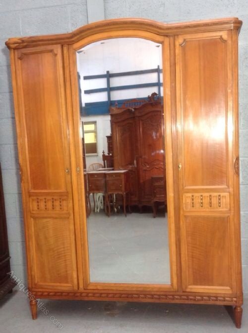 The armoire has a large bevelled mirror door with two side panelled doors.