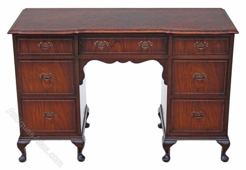 Antique quality walnut twin pedestal desk writing or dressing table.