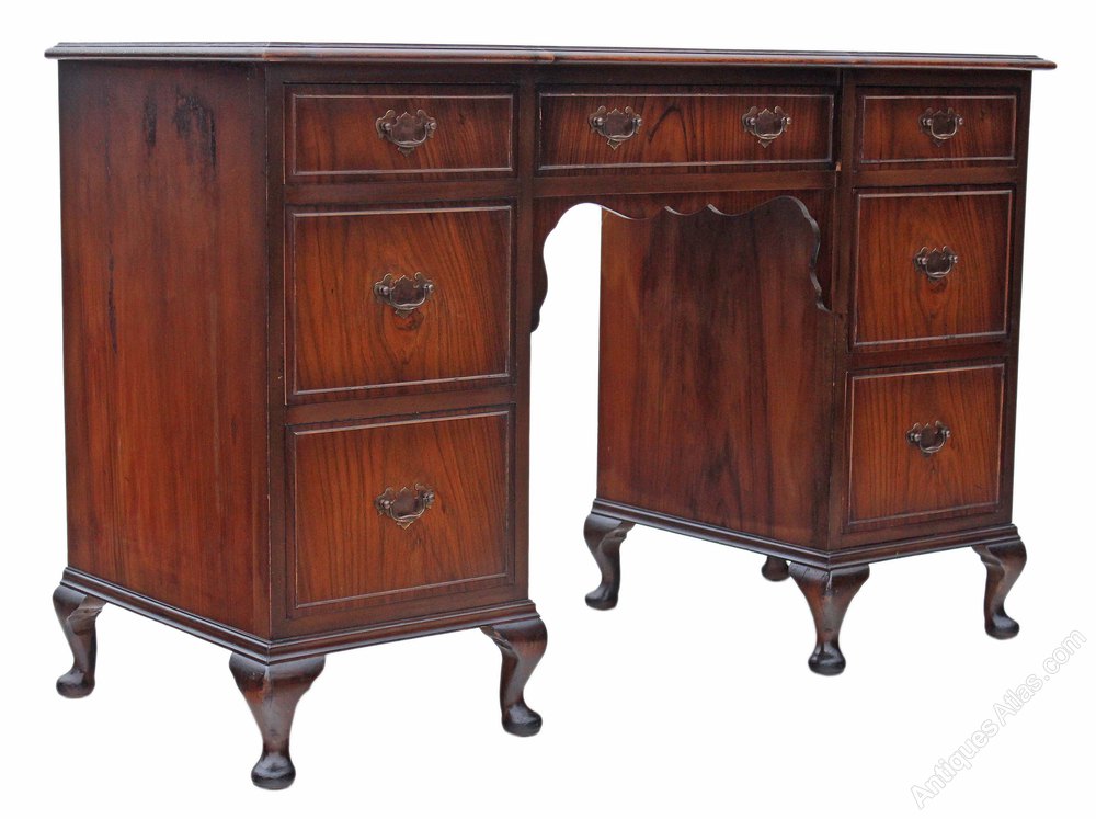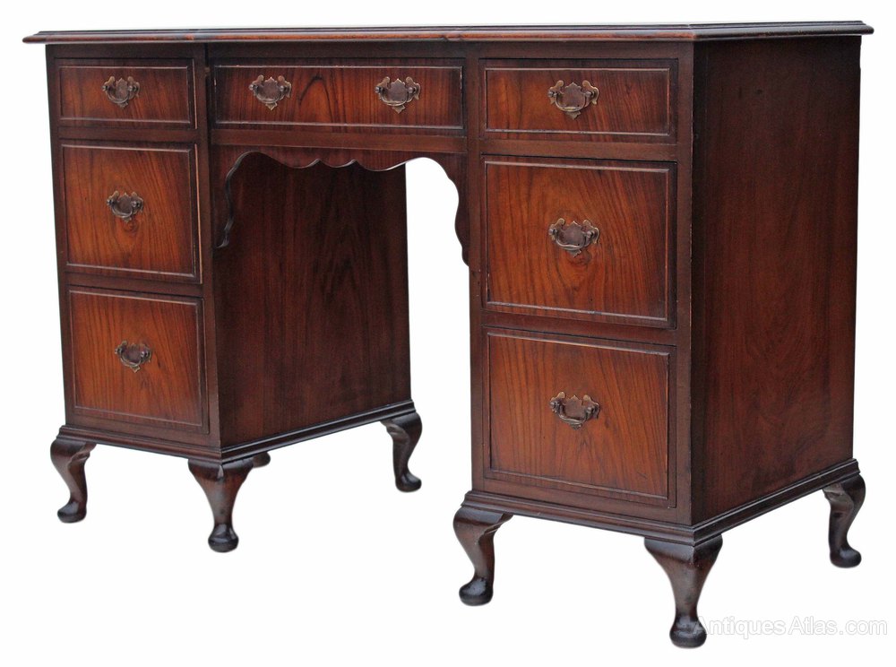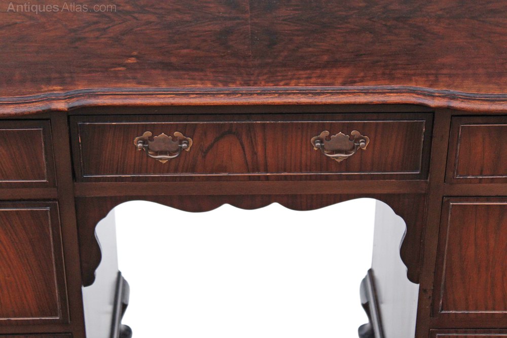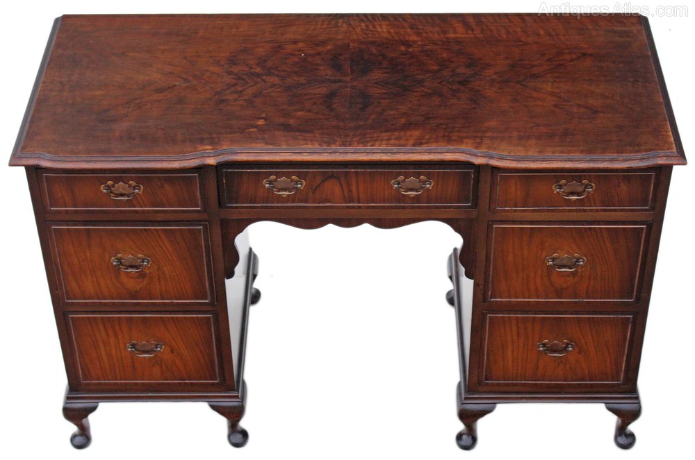 Walnut Twin Pedestal Desk Writing Dressing Table