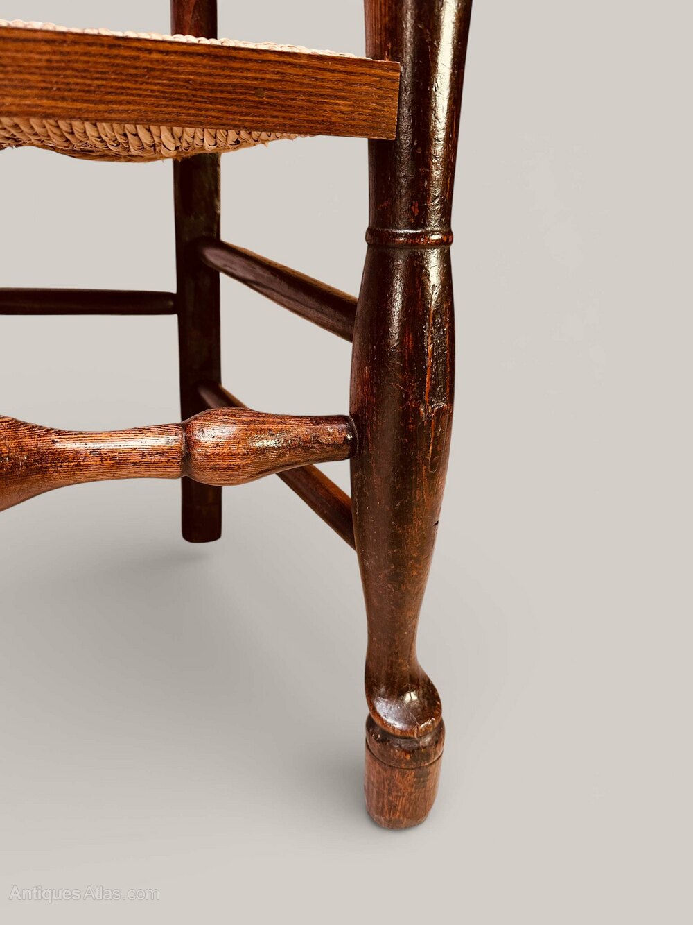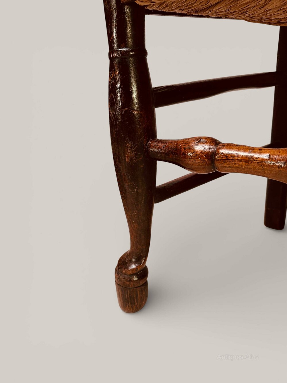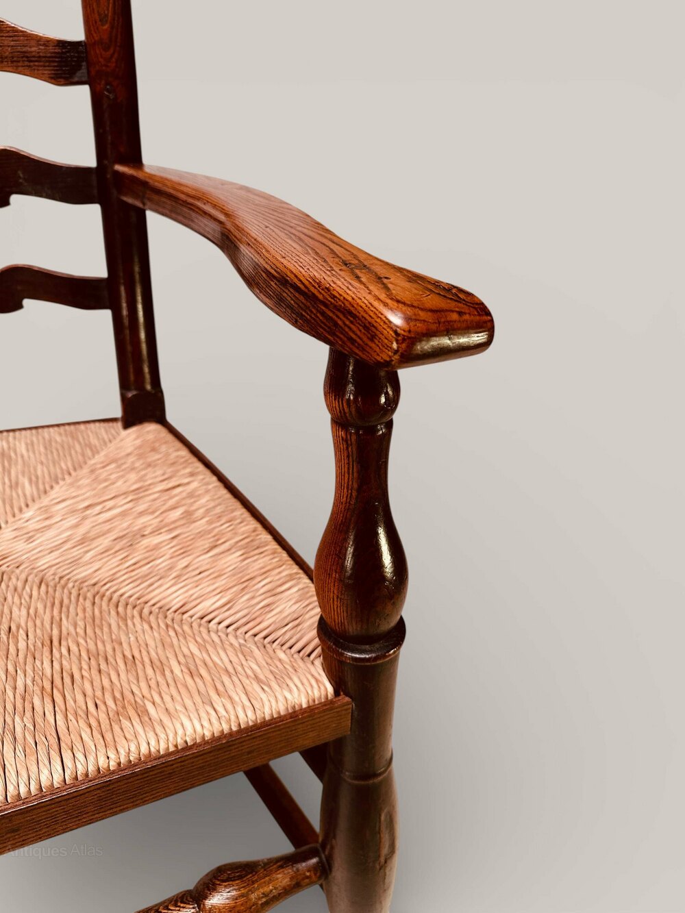 Wavy Ladderback Rush Seat Chairs In Ash, C1840