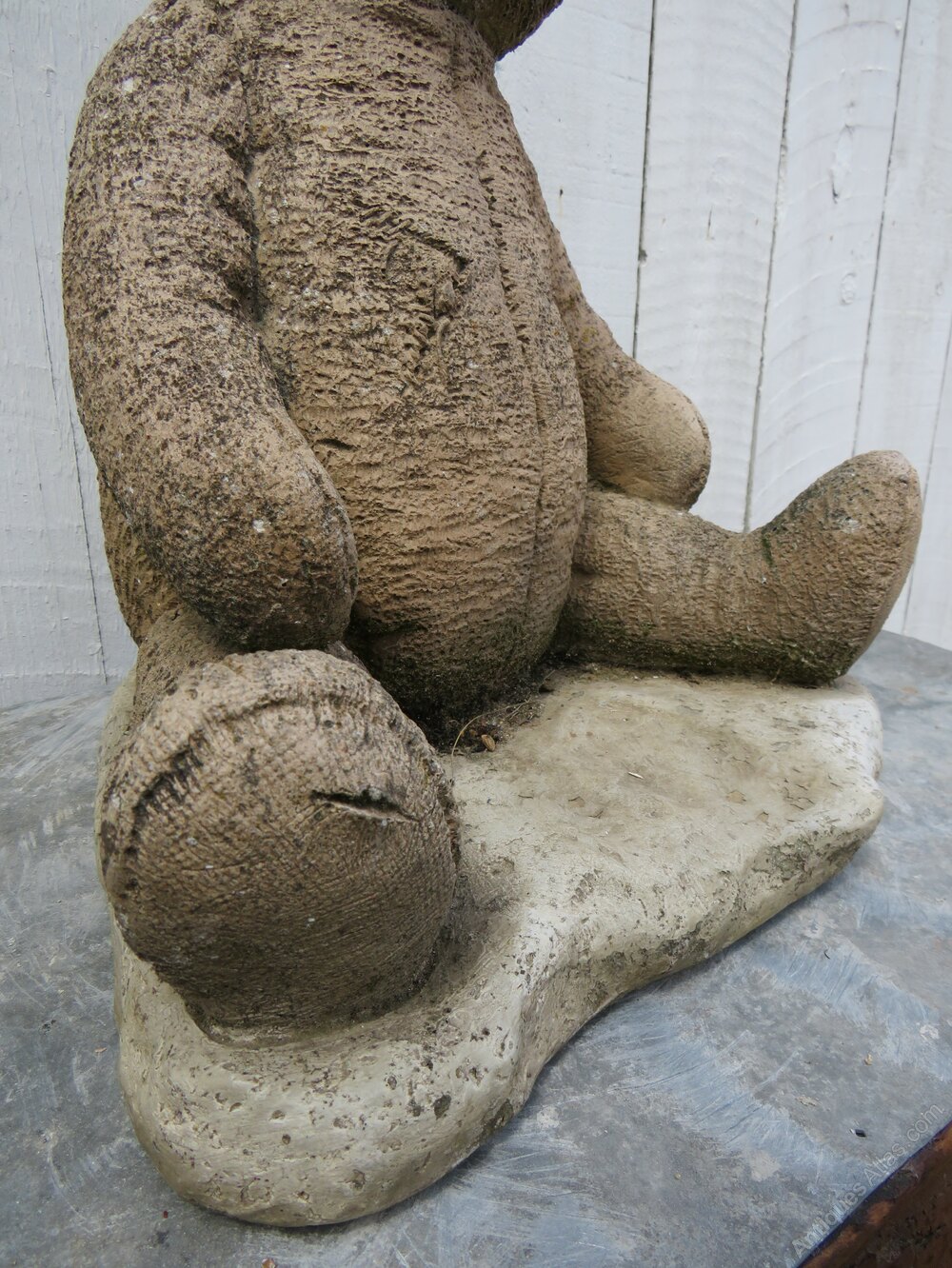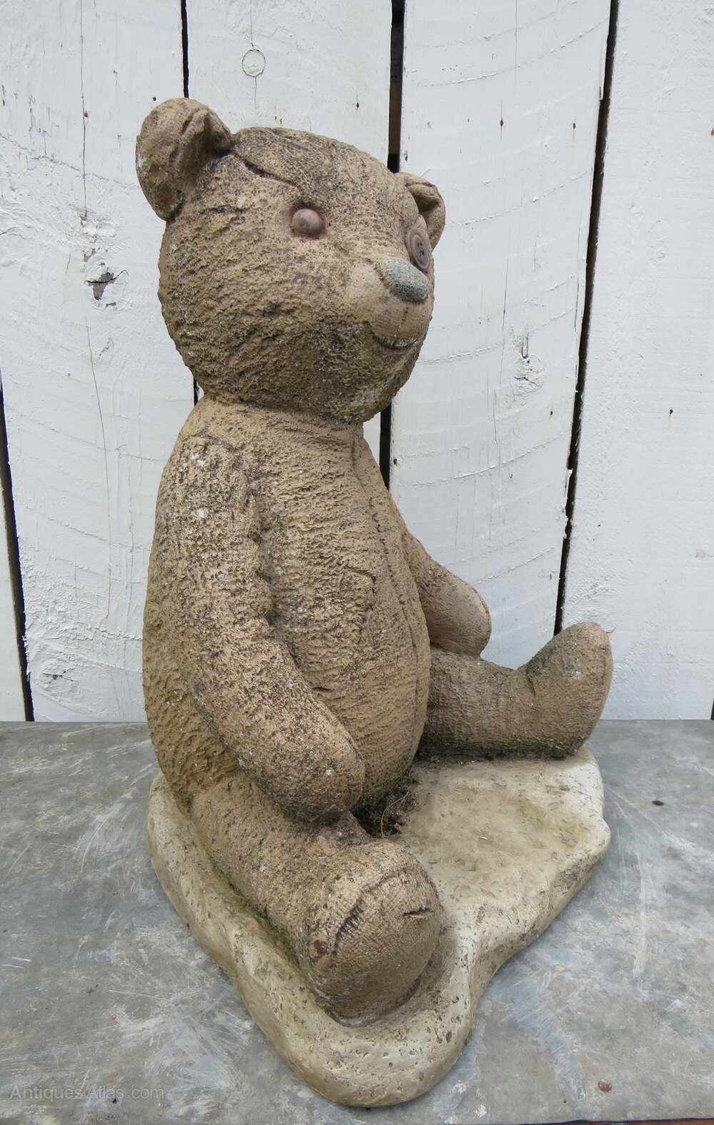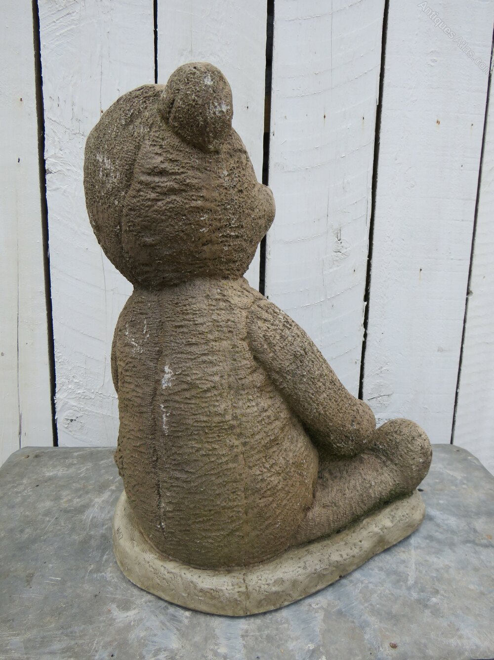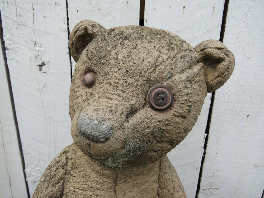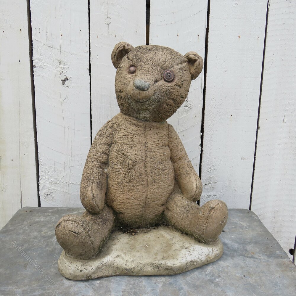 Vintage English decorative reconstituted stone statuary weathered garden teddy ornament.
