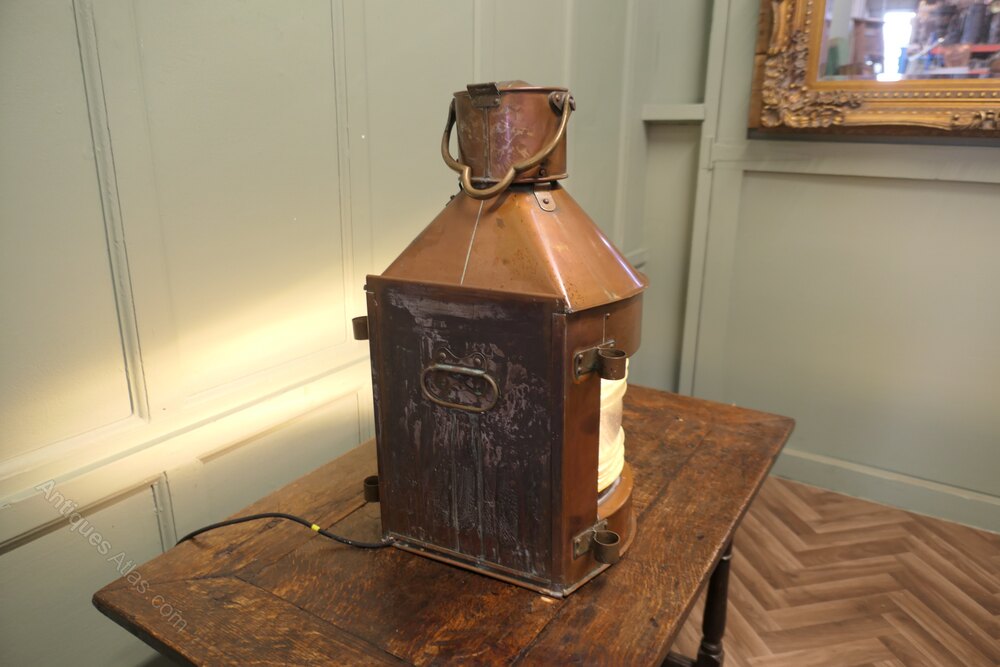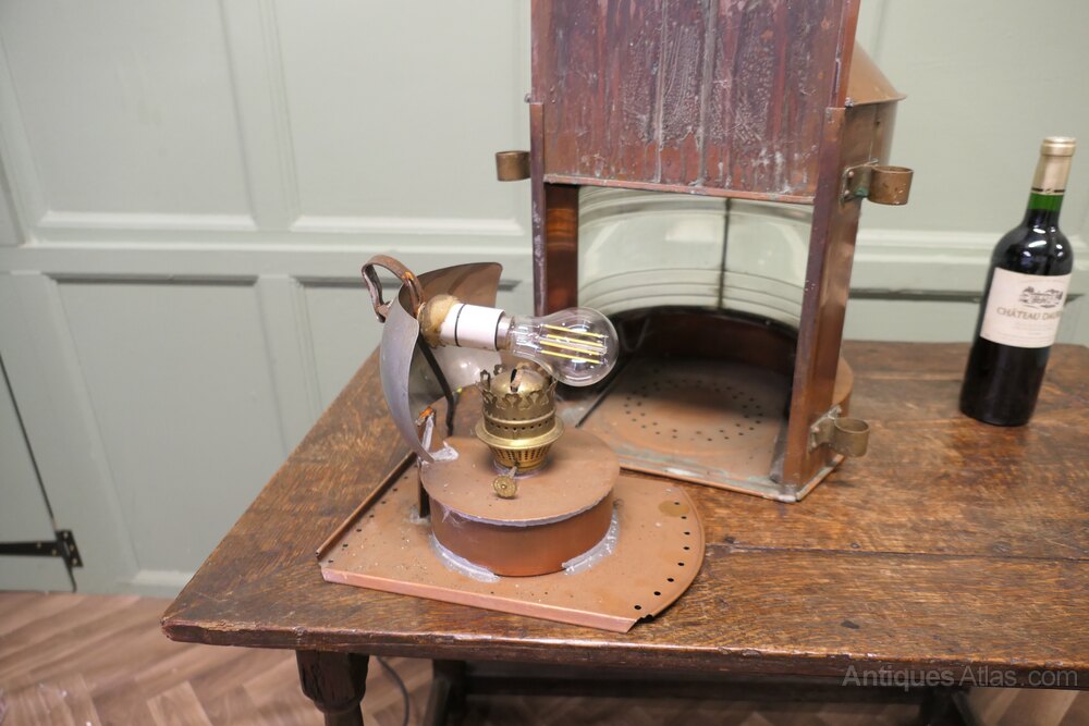 This is a large ships light, it has an addition to allow it to be used as an electrical lamp, the oil burner has been left intact should you prefer to change it back to oil