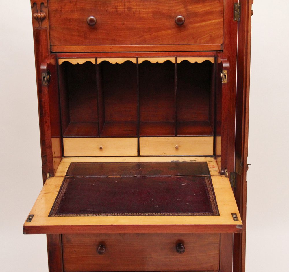 19th Century mahogany Wellington chest with a secretaire drawer