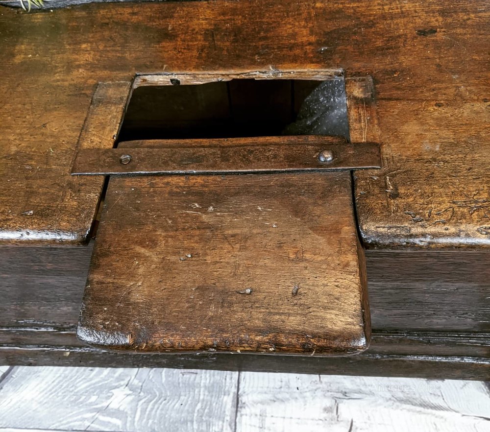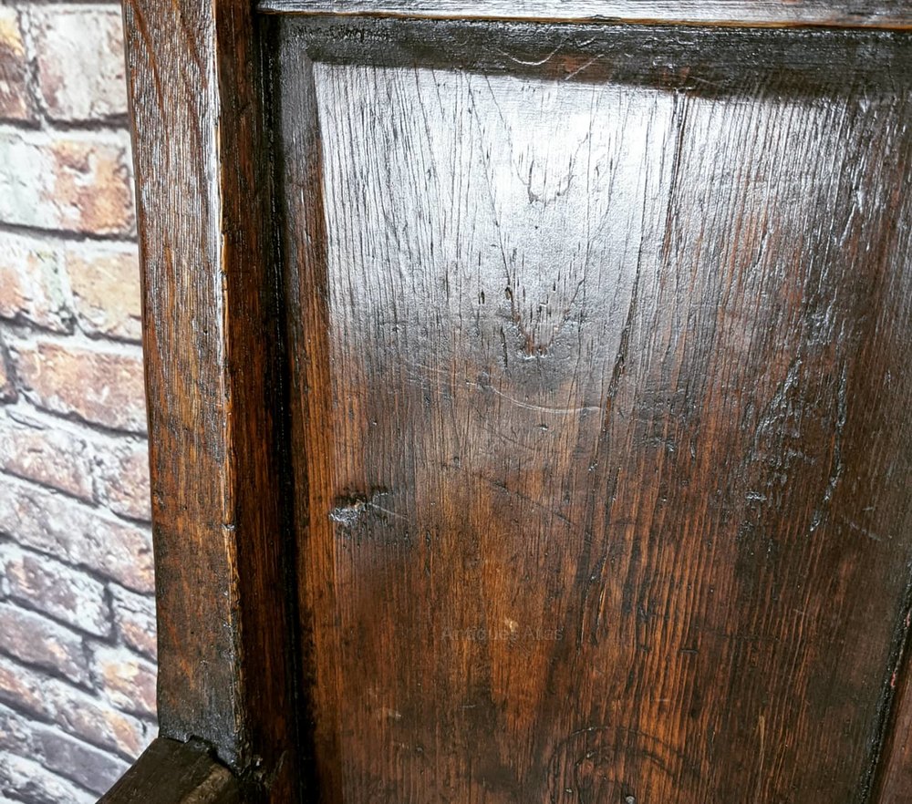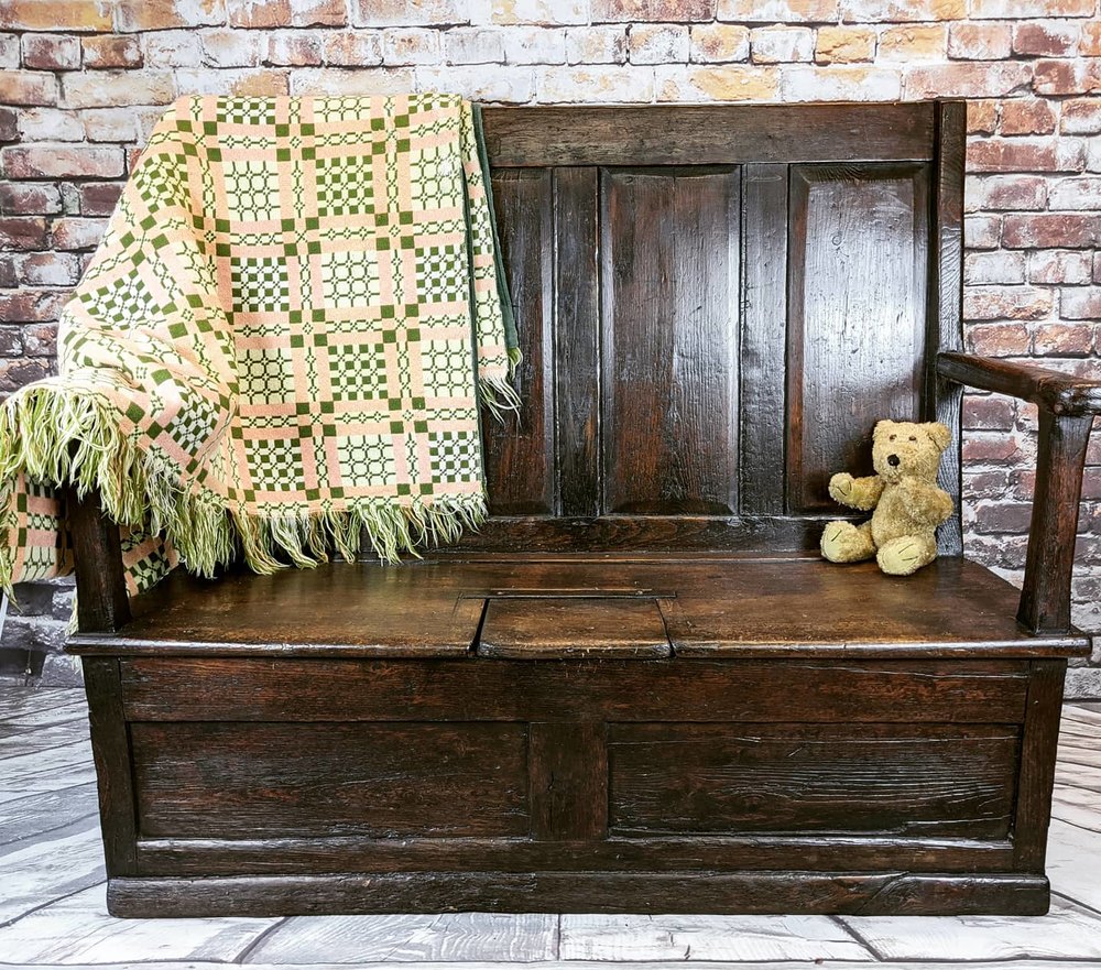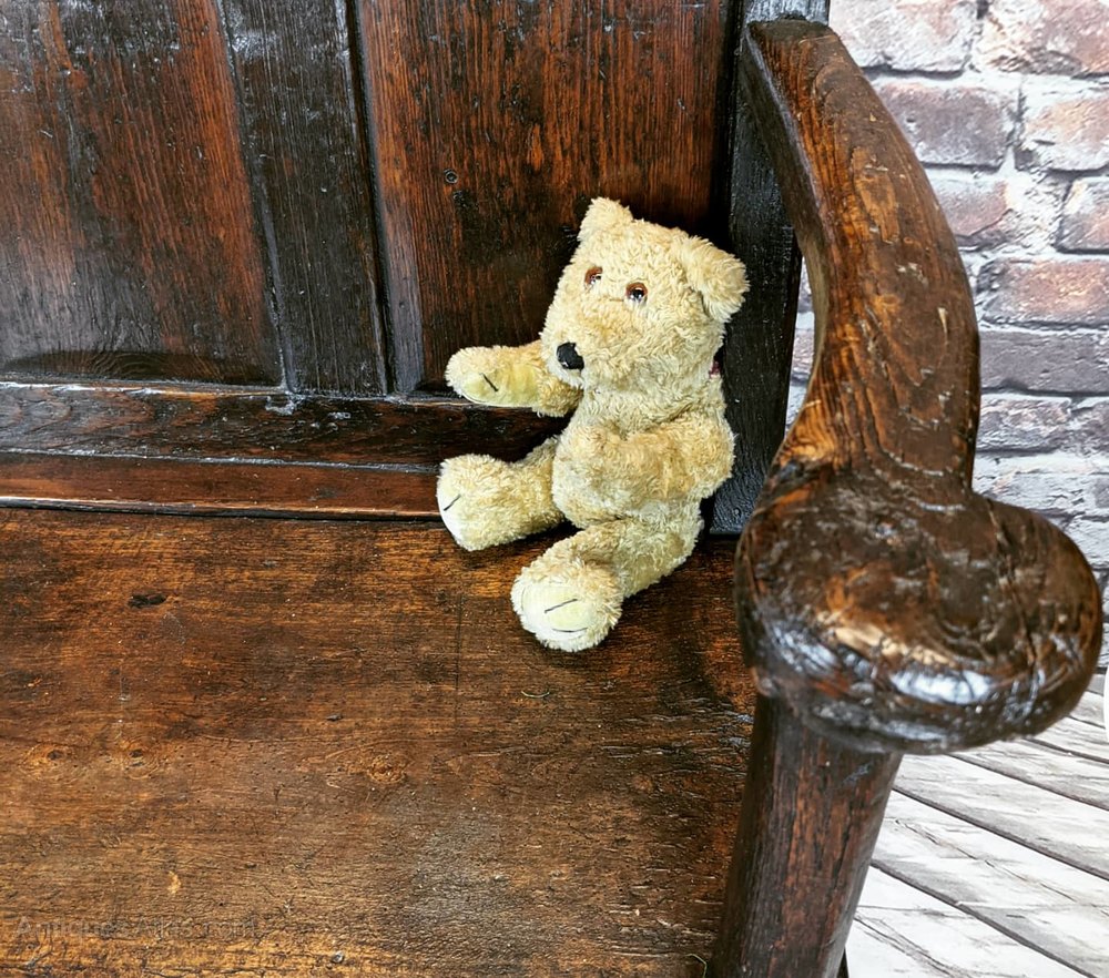 A wonderful little Oak and Pine Welsh closed settle. With an unusual sliding panel to access the storage. Only 49" wide and 41" high. Great condition