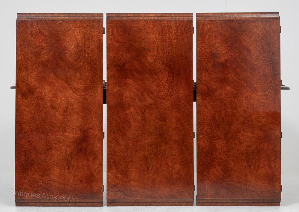 The top of the table having double mouldings, wonderful matched timbers and features 3 extra leaves making this a very versatile dining table.