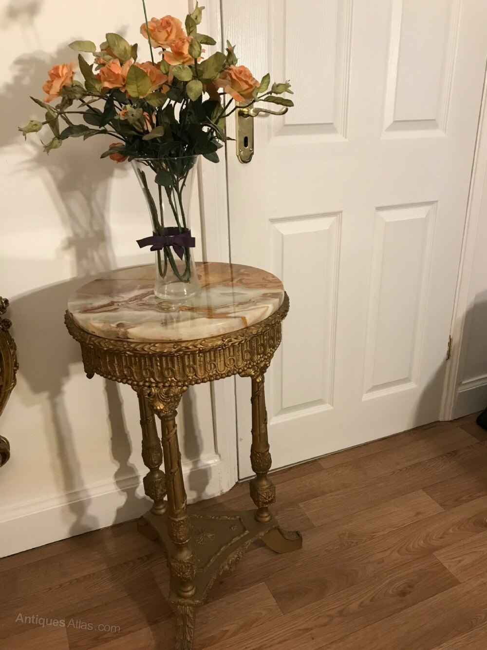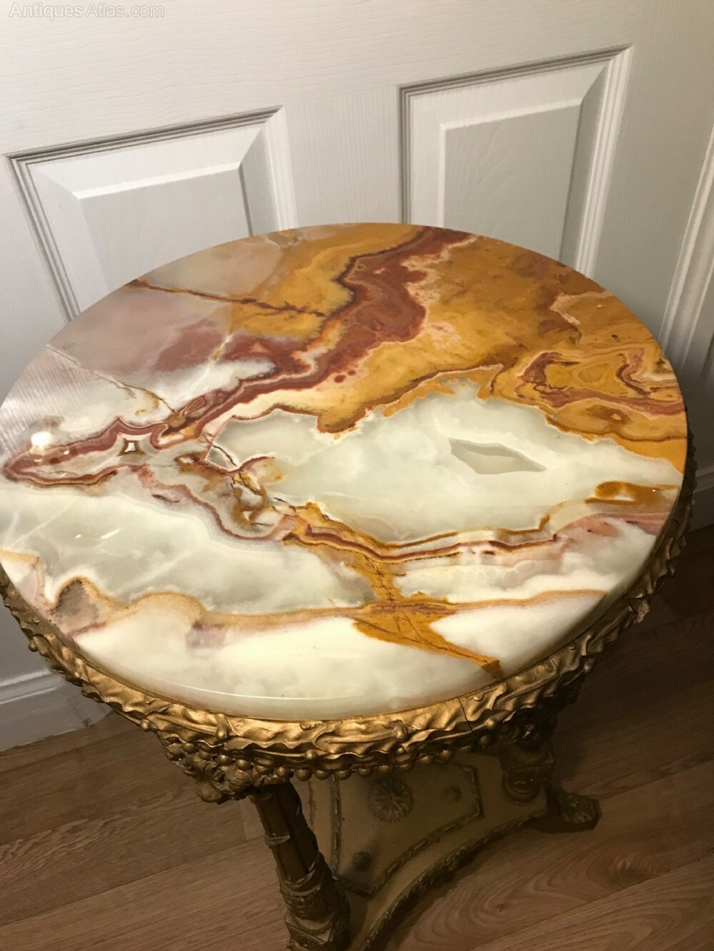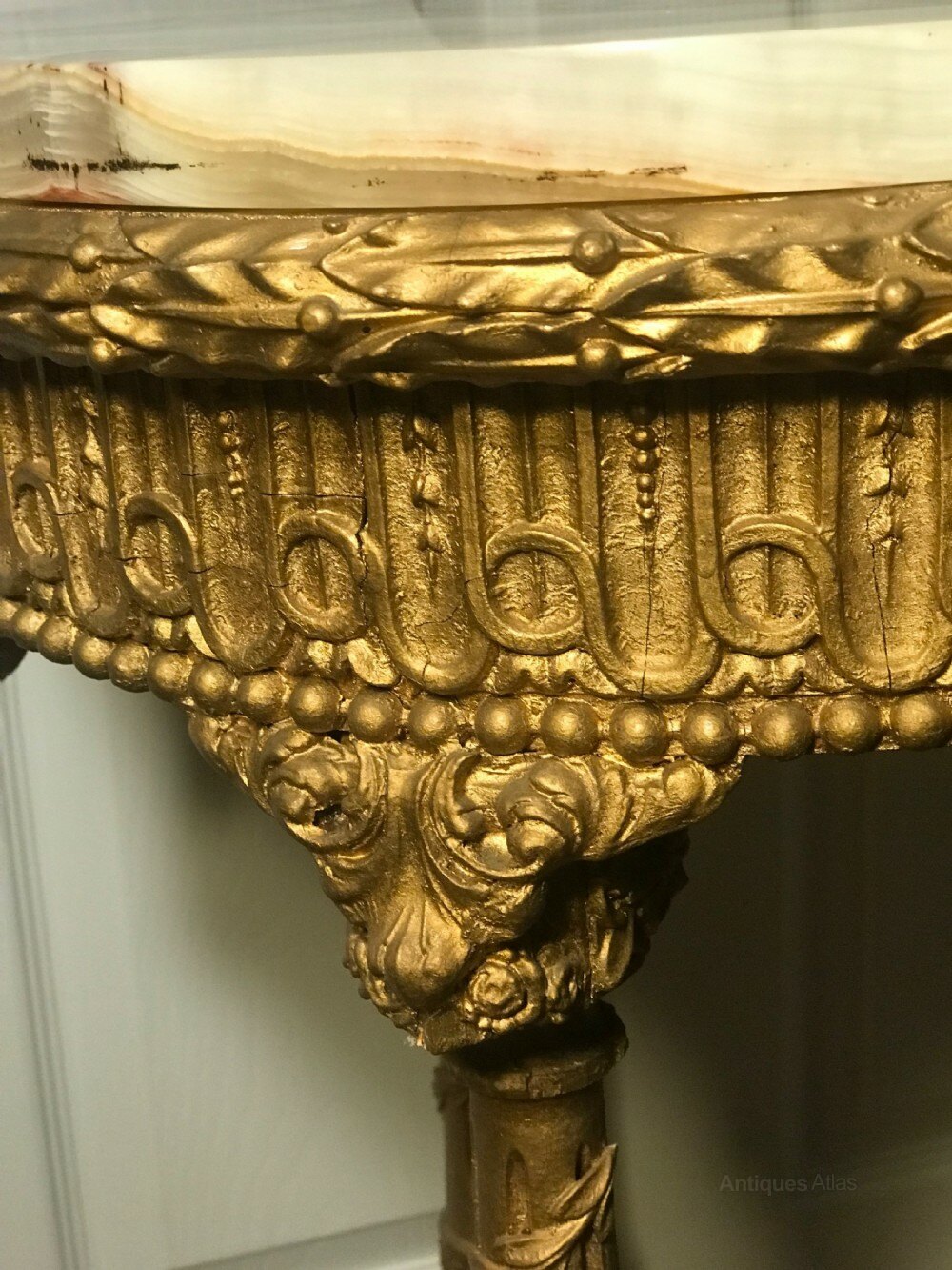 Very good for the age.Onyx top is in original order, woodwork re-gilded in past century.