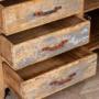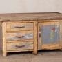 Add rustic charm and character to your home with this Wooden Kitchen Cupboard. With a weathered pine look to the top and cupboard, this sideboard is of excellent quality and this Vintage Wooden Cupboard can be used to keep all your kitchen tools to hand. rnWith drawers to keep cutlery to the left and cupboard space to the right – this is a fantastic storage unit and keep that much sought-after country charm in your interior.