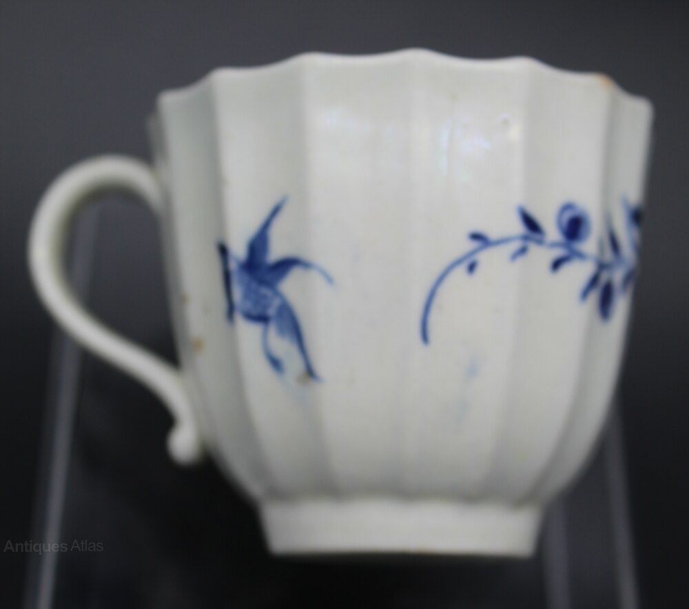 Worcester Fancy Birds & Wet Blue Coffee Cup c.1770