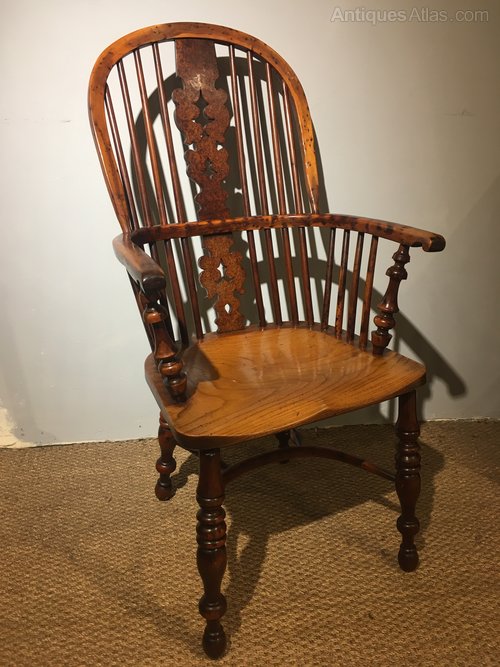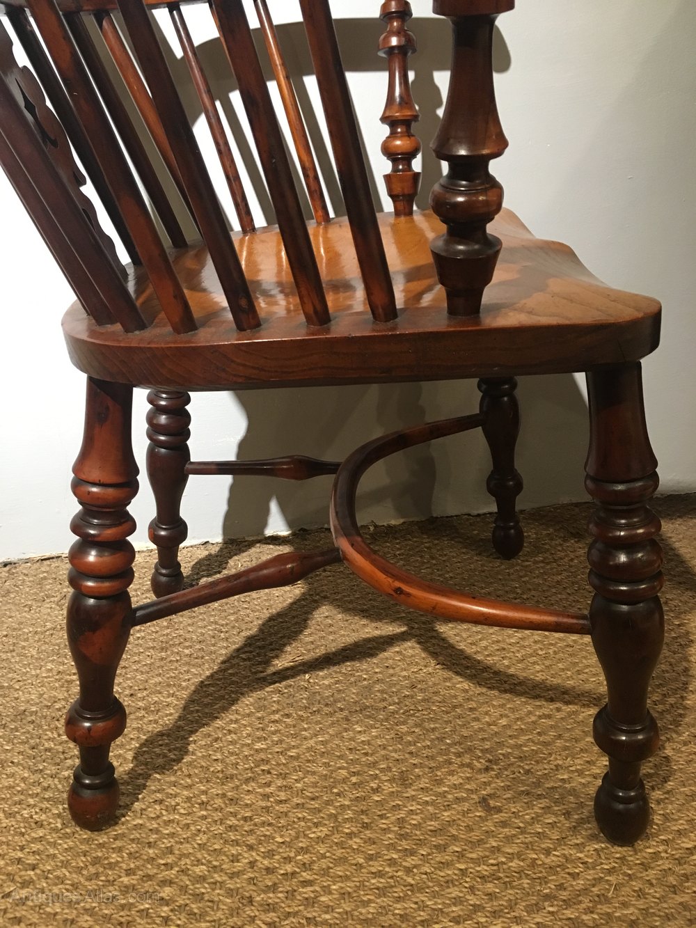 Wonderful early 20th century yew & elm Windsor chair with a crinoline stretcher