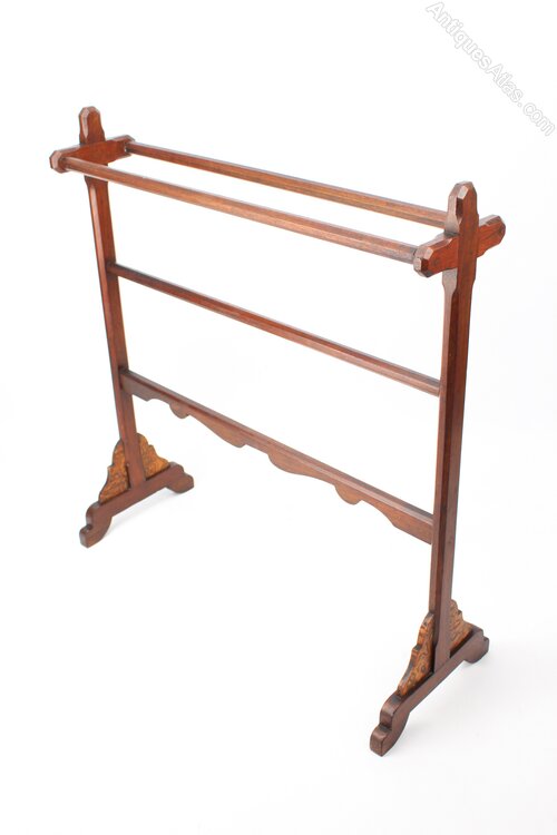 Victorian Gothic Revival Walnut Towel Rail Stand