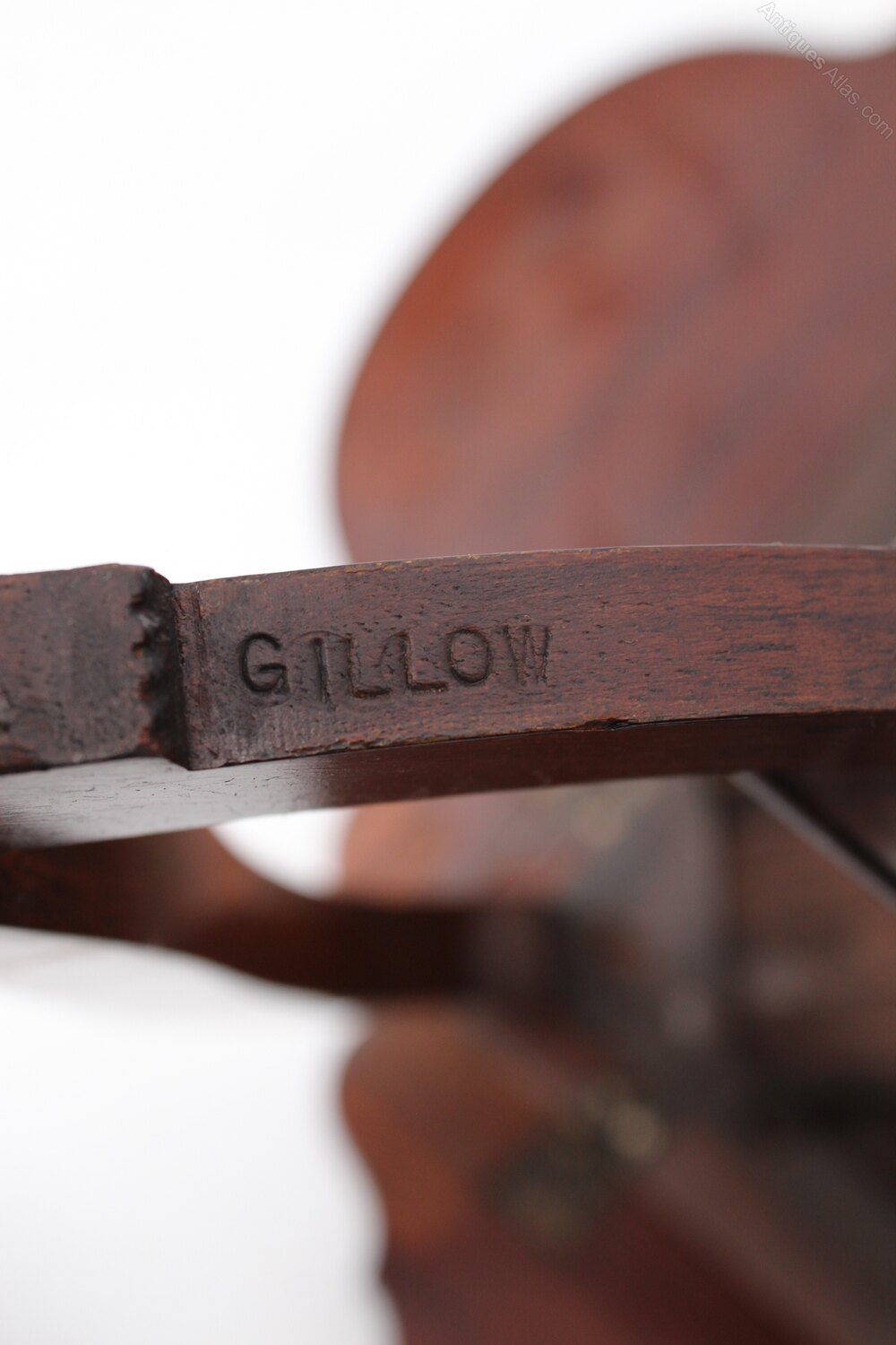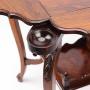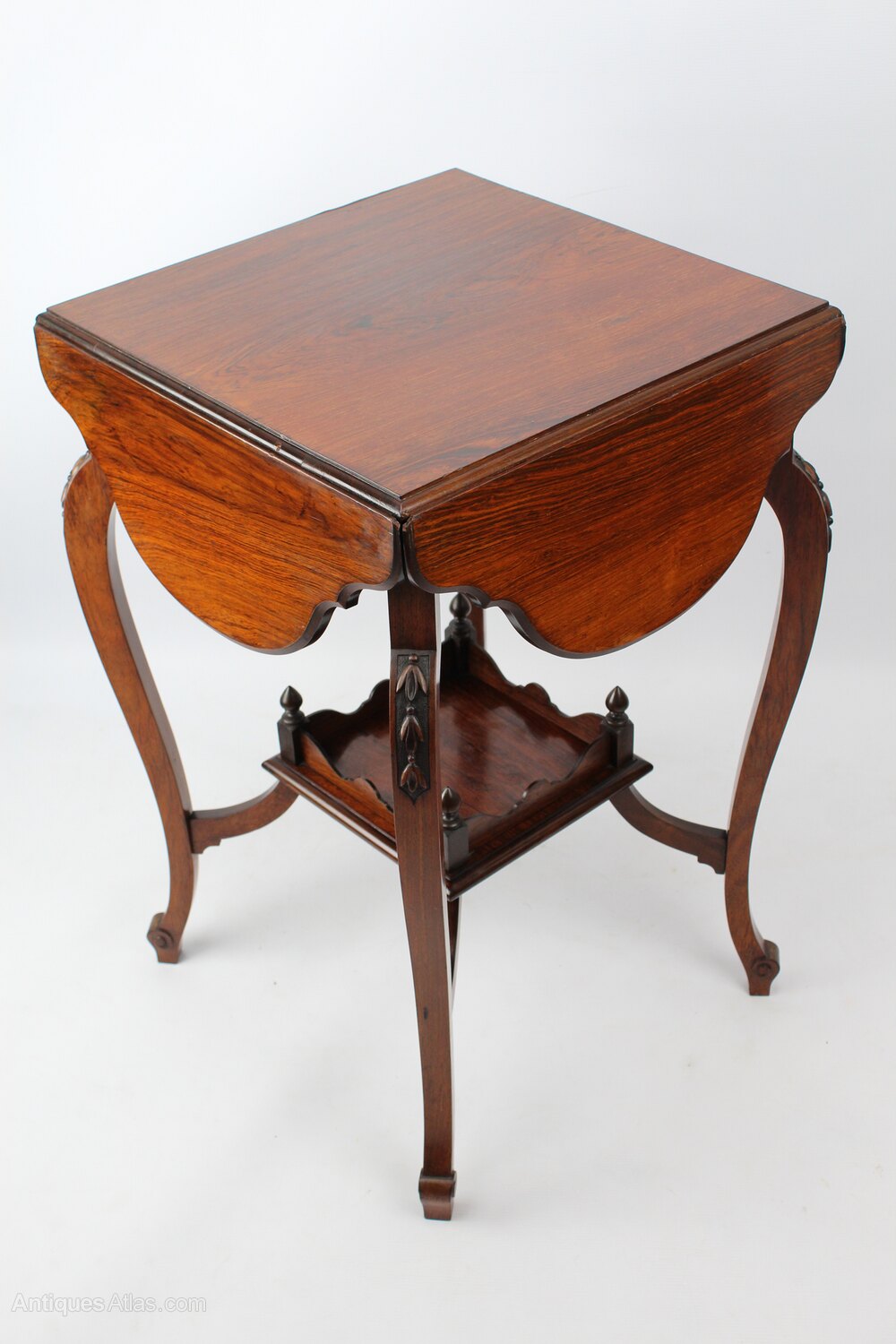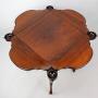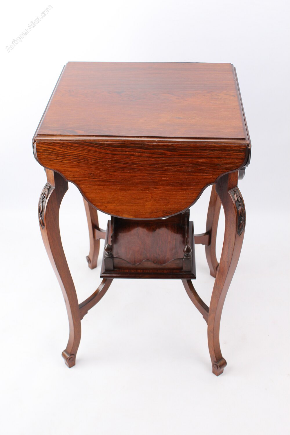 A wonderful quality antique late Victorian drop leaf games table or lamp table in rosewood dating from circa 1890 and stamped “Gillow”. Featuring four drop leaves with elegantly shaped and carved edges, each can be opened and is supported with fold-out wooden arms along with a pull out cup for gaming counters to each corner. In a beautifully figured rosewood with superb original colour and patina, it stands on cabriole legs, the knees carved with harebells all united by a lower tier. Stamped “Gillow” underneath one of the legs.Construction/Wood: