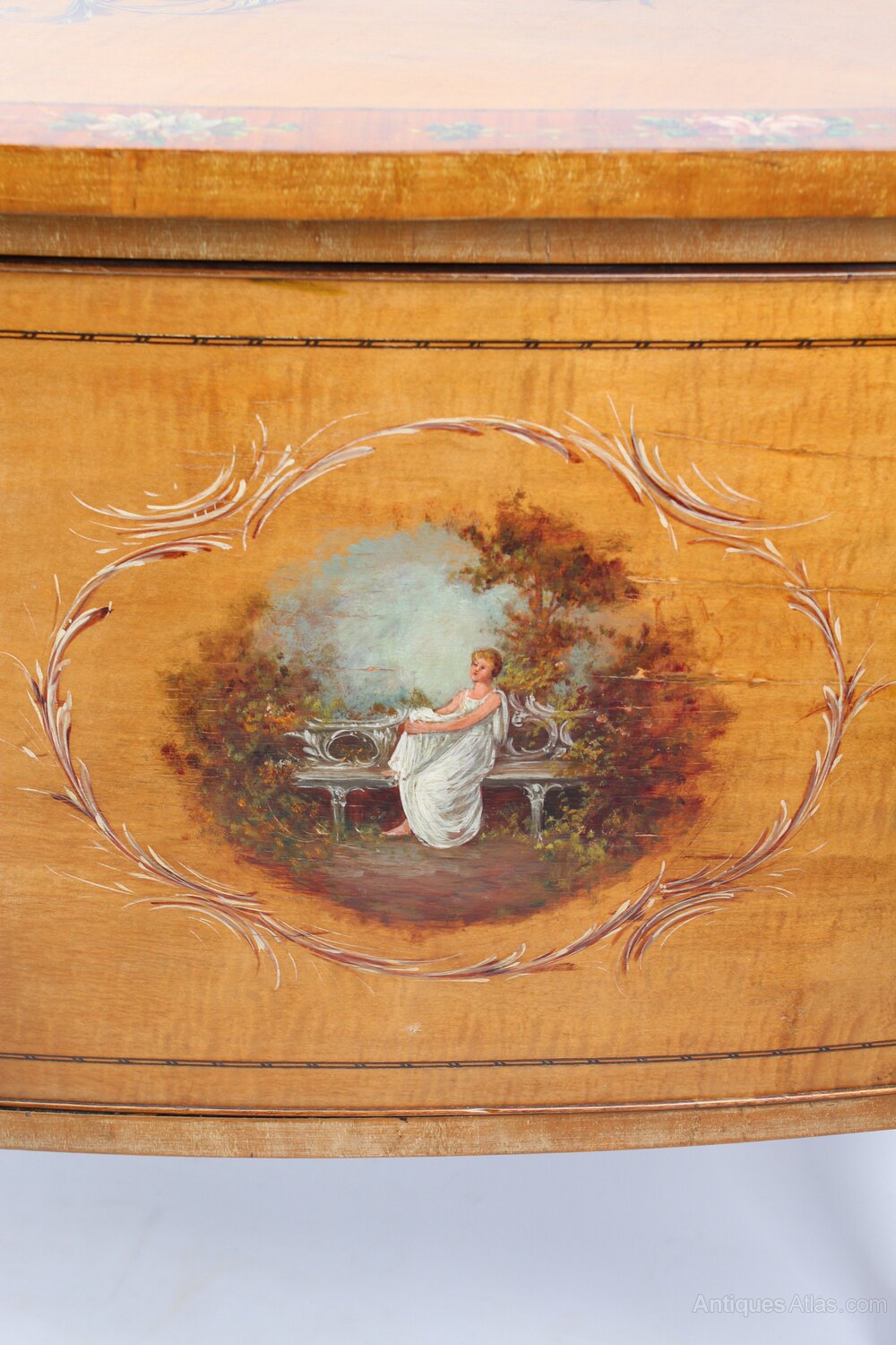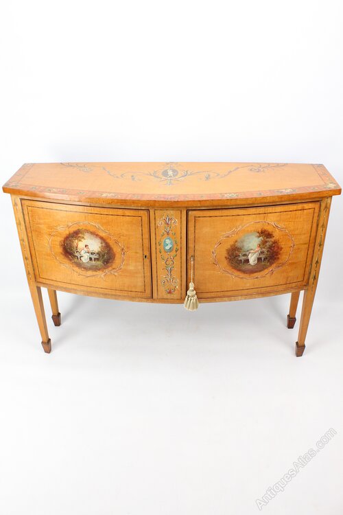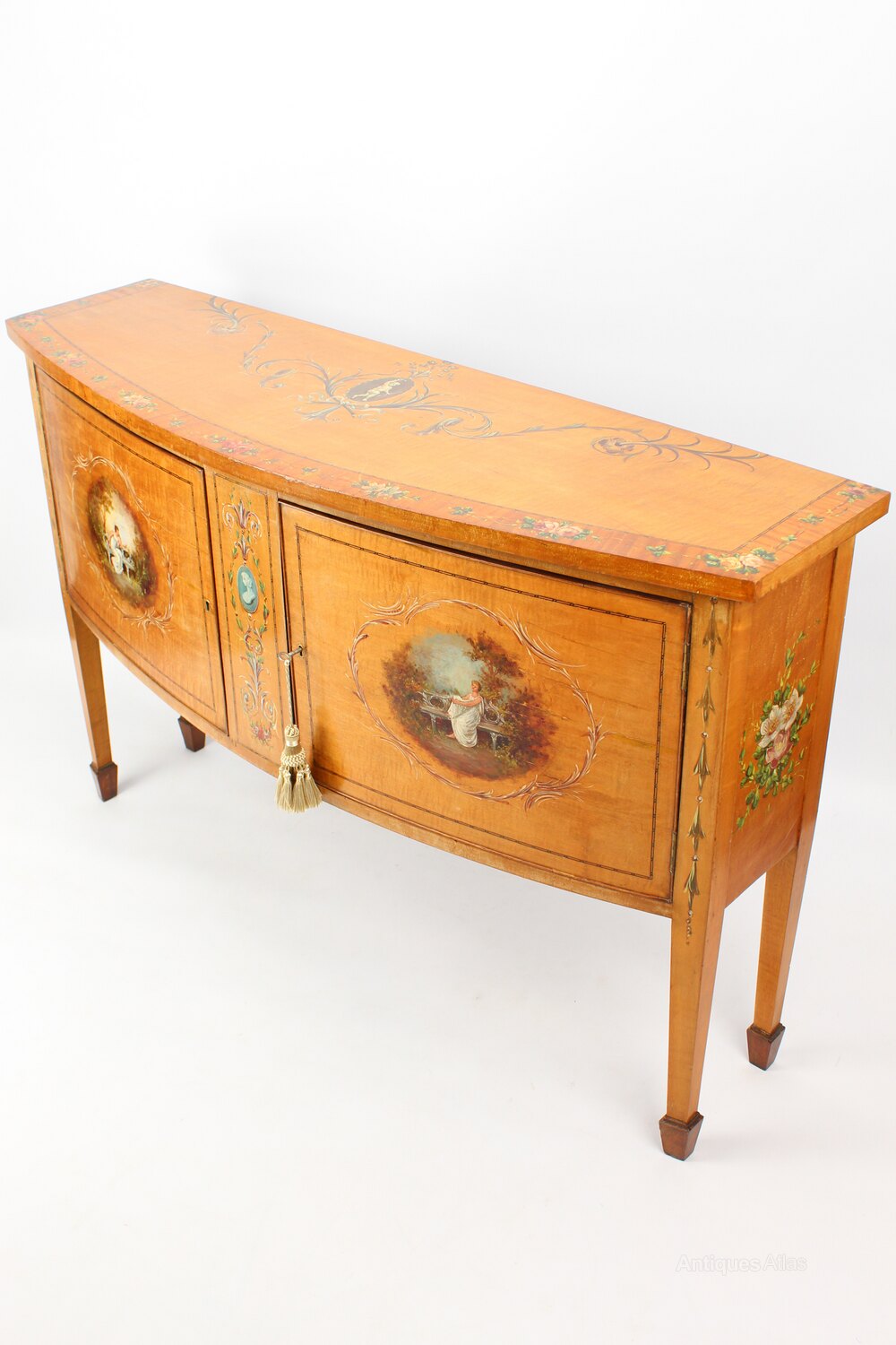Victorian Painted Satinwood Bow Front Side Cabinet