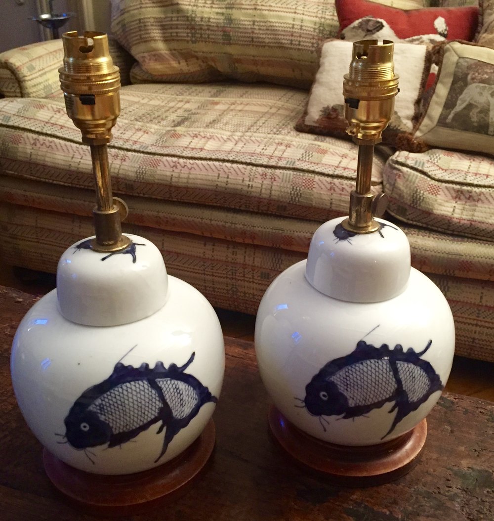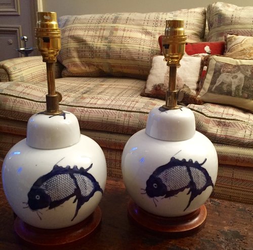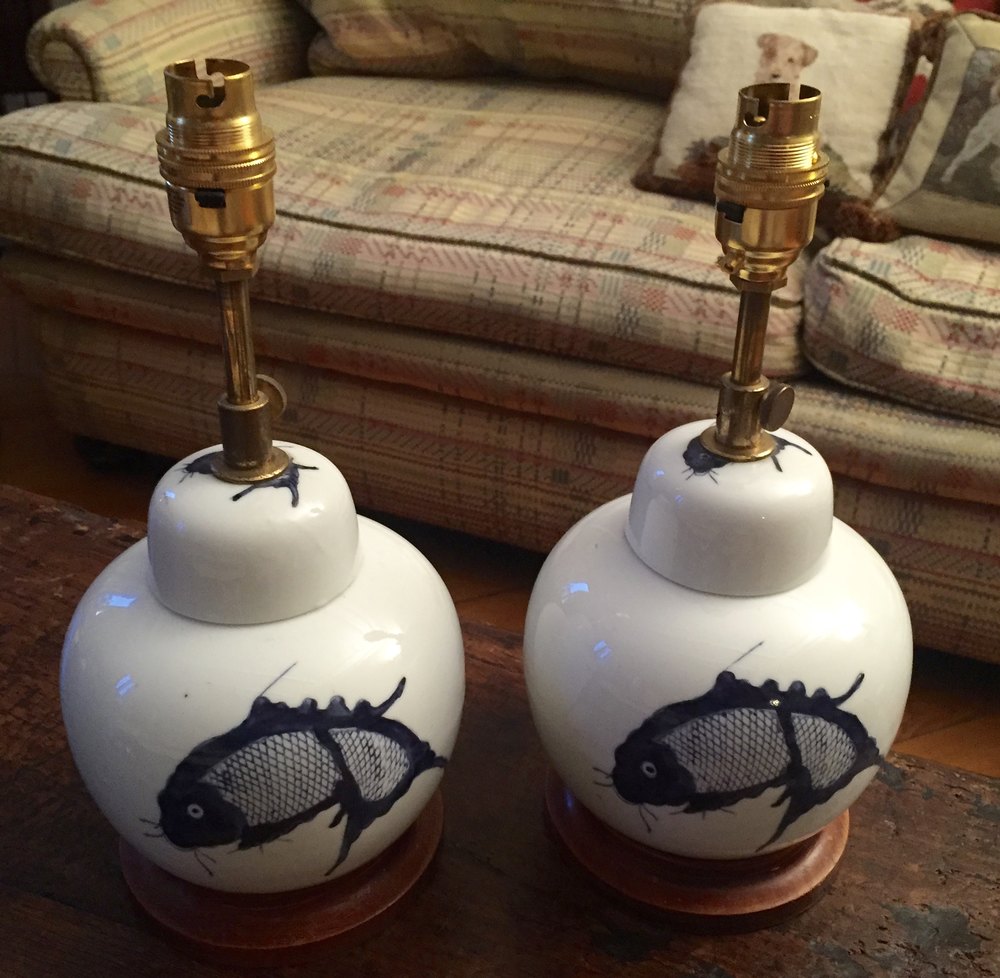 Decorative Pair of Oriental Porcelain Jars Sofa Lamps ideal for your Conservatory or Seaside Home. Rewired and ready to go!RO