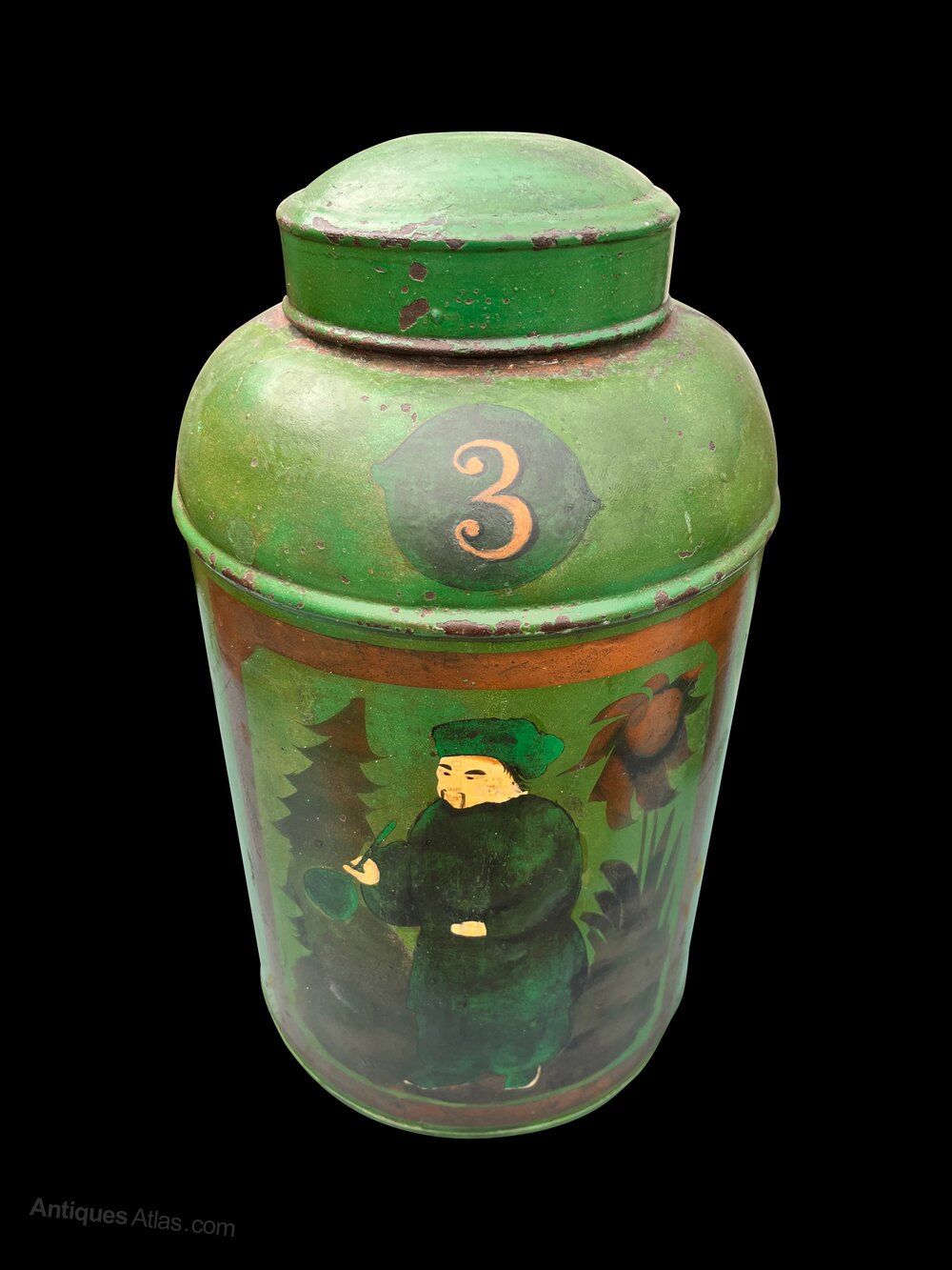 C19th Chinoiserie lacquered toleware tea canister