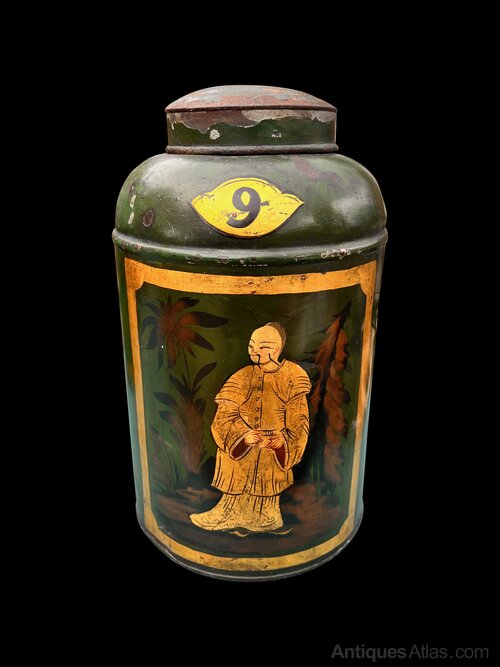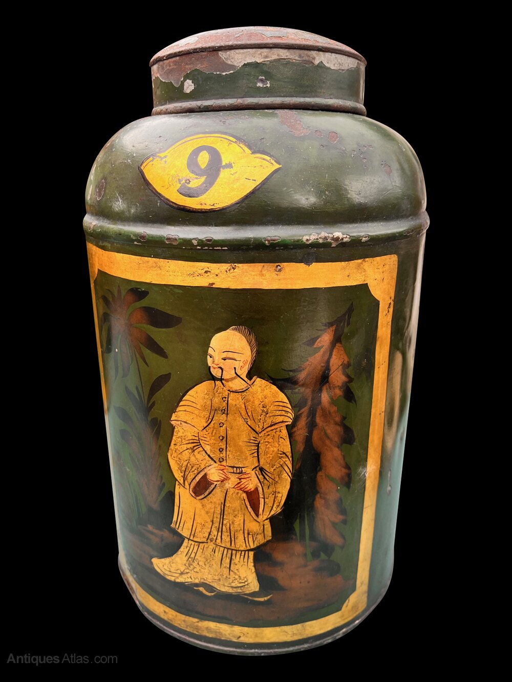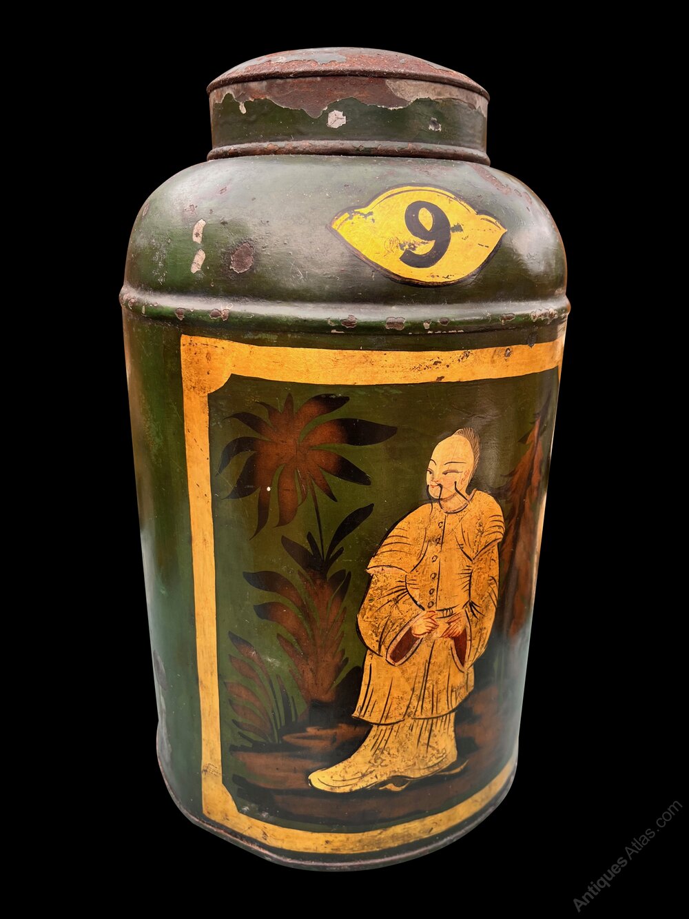Victorian Chinoiserie Lacquered Toleware Tea Canister