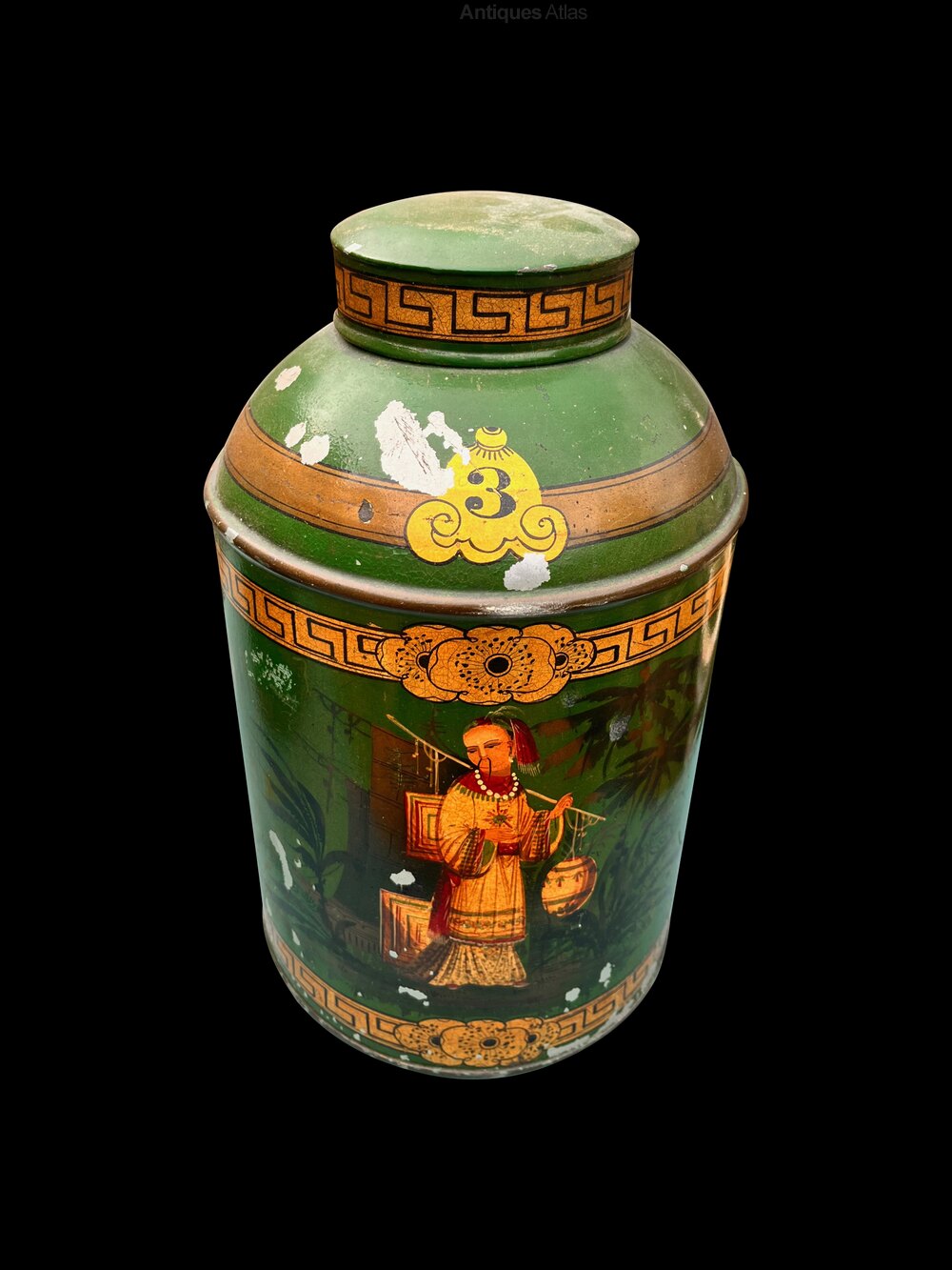 C19th Chinoiserie toleware tea canister,Some losses to the finish, but in overall good condition for the age