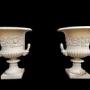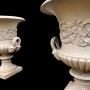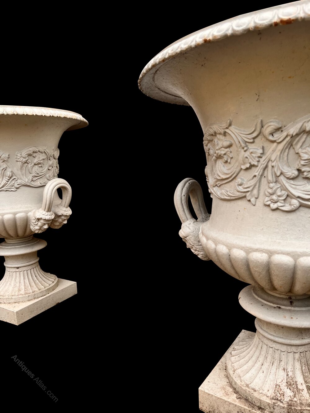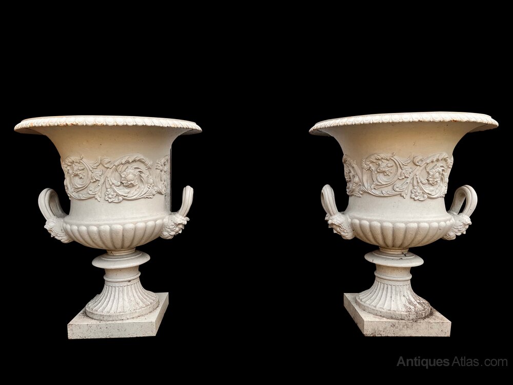 Large Campana Urns with satyrs masks from the English Foundry Andrew HandysideThese urns were stripped of the old paint when they arrived, so they were primed and new paint applied