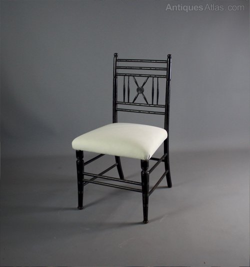 Victorian Morris Sussex type childrens chair. Ebonised with nice quality turnings, simply upholstered in white fabric. Measures 68 cm x 38 cm x 34 cmDateArts and Crafts :