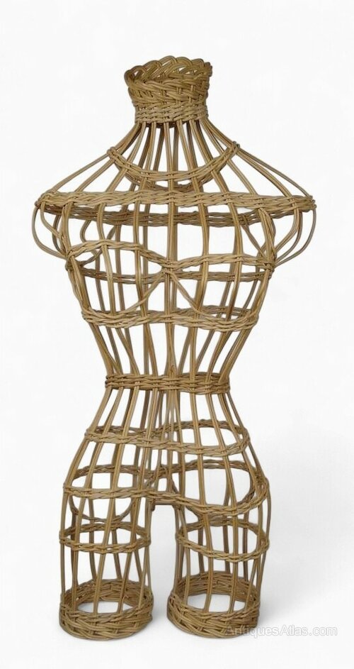Mid century wicker mannequin of a female torso , including legs , Very good condition , there doesn't seem to be any breaks to the cane .H.34.5"/87.5cm x W.16"/40.5cm x D.9"/23cm