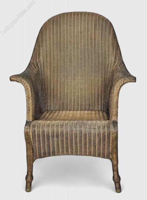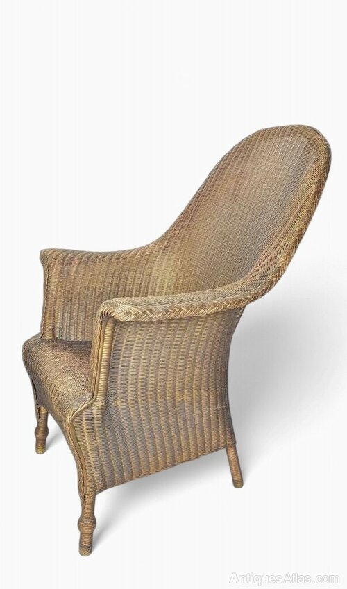 Large Lloyd Loom armchair , dated 1930 , retaining it's original gold finish , brass feet and with no damage to the weave . High back and low skirt examples are becoming difficult to find in this original finish and condition and also available is the matching table , again in good original condition . Very comfortable too .H.40.2"/102.5cm x D.28"/71cm x W.27"/68.5cm