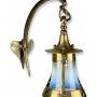 Arts and crafts wall light comprising heart shaped backplate supporting bell shaped lantern with vaseline glass shade .Originally bought for a Devon farmhouse but never installed , the PAT test is present but needs an electrician to instal .H.12"/30cm x D.12"/30cm x W.5.5"/14cm