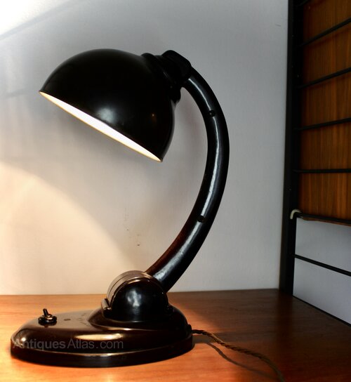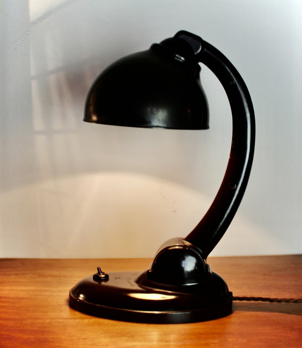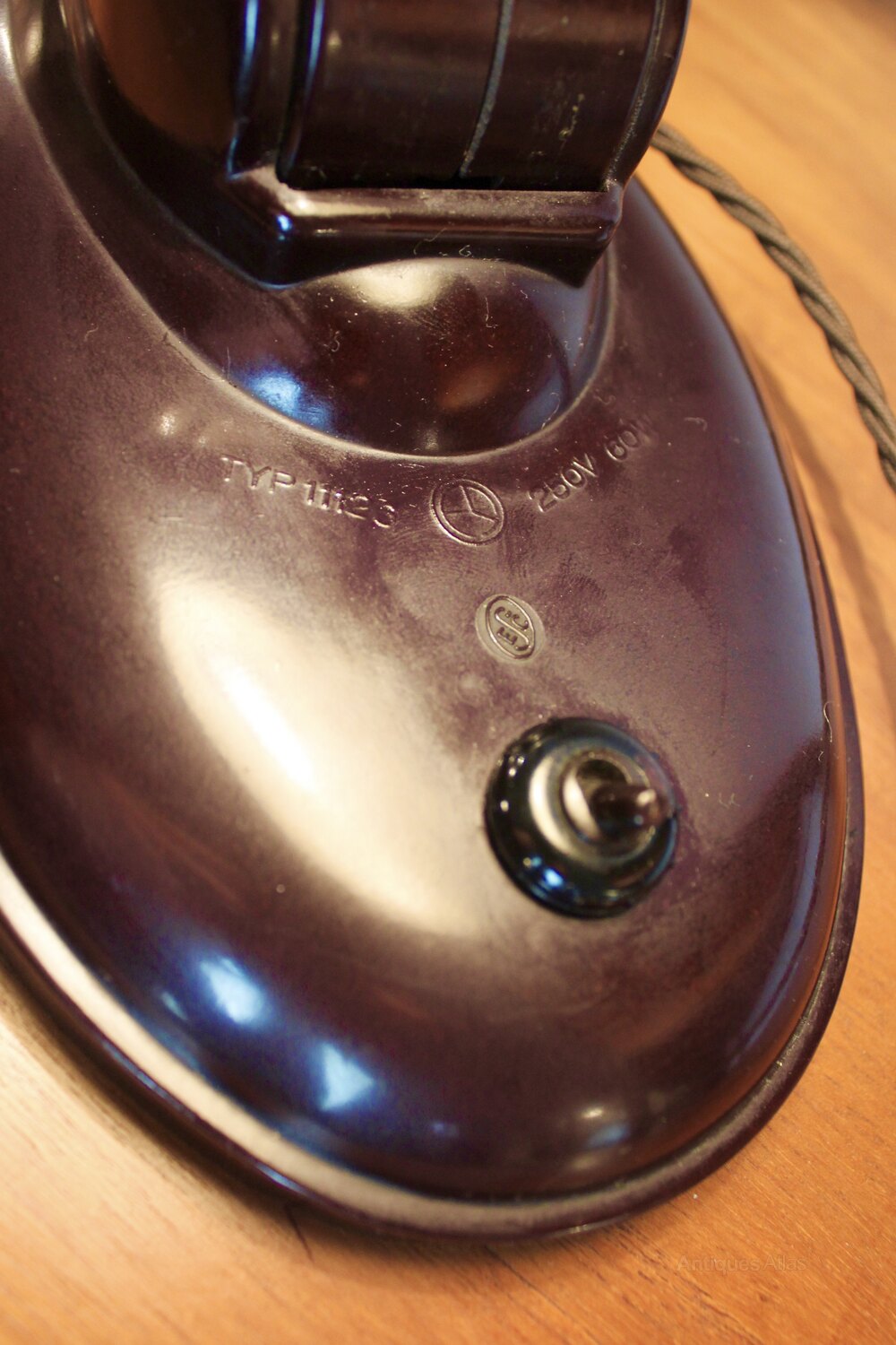 Bakelite desk lamp designed by Erik Kirkman Cole in the 1930s. The lamps were very popular and were produced until the 1950s. Wired and ready to use. Note there is a small crack to base where flex protrudes. Measures 37 cm high x 21 xm x 14 cmDateArt Deco :
