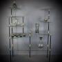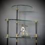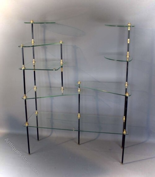 Fabulous French 1950's shelving unit. Eight toughened plate glass shelves joined by brass rods . Can be dismantled.Measures 135 cm high x 100 cm wide x 36 cm deepDateRetro :