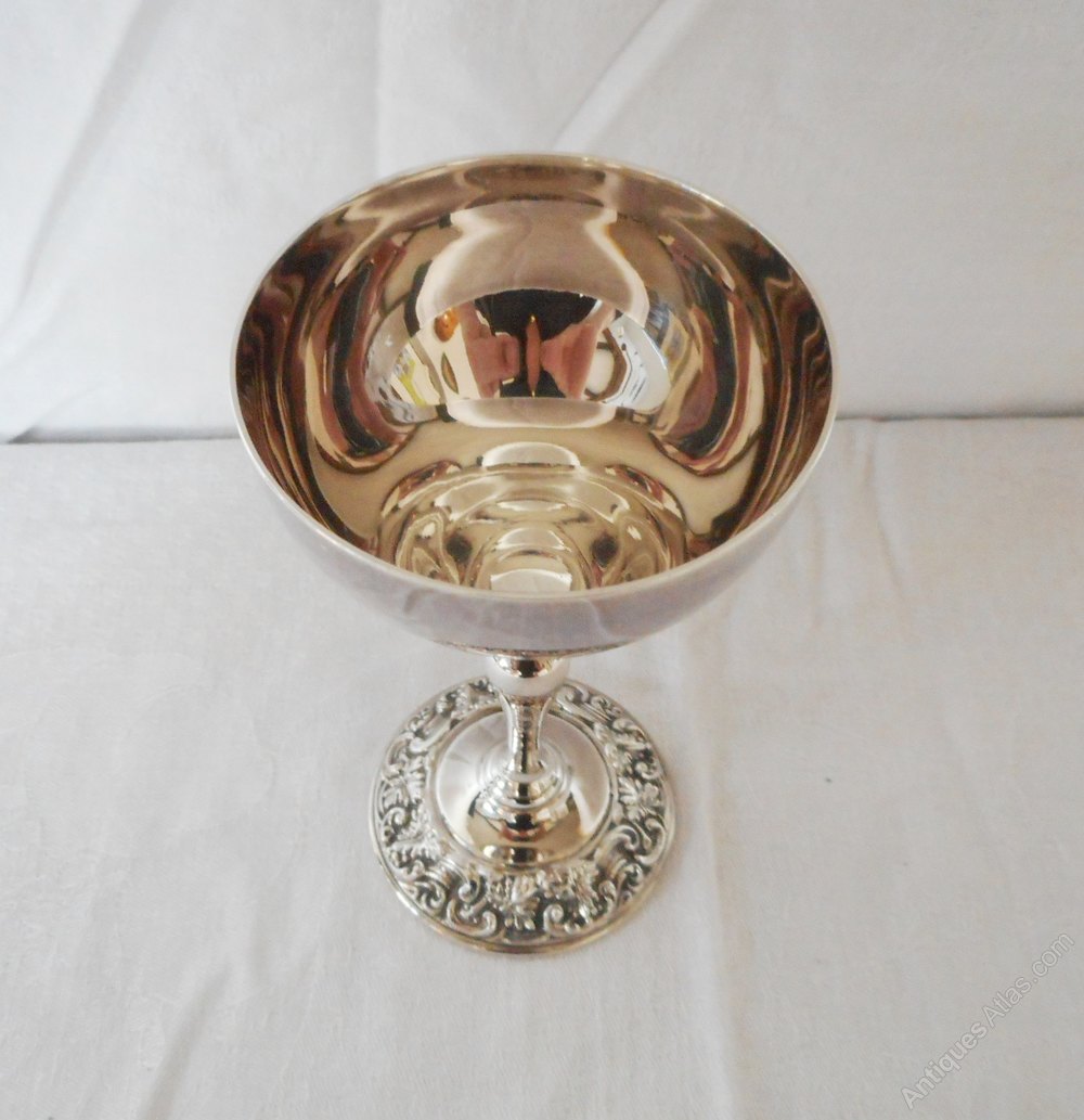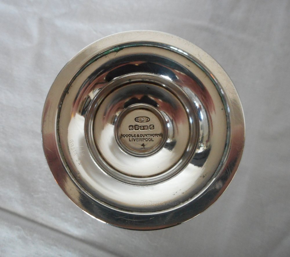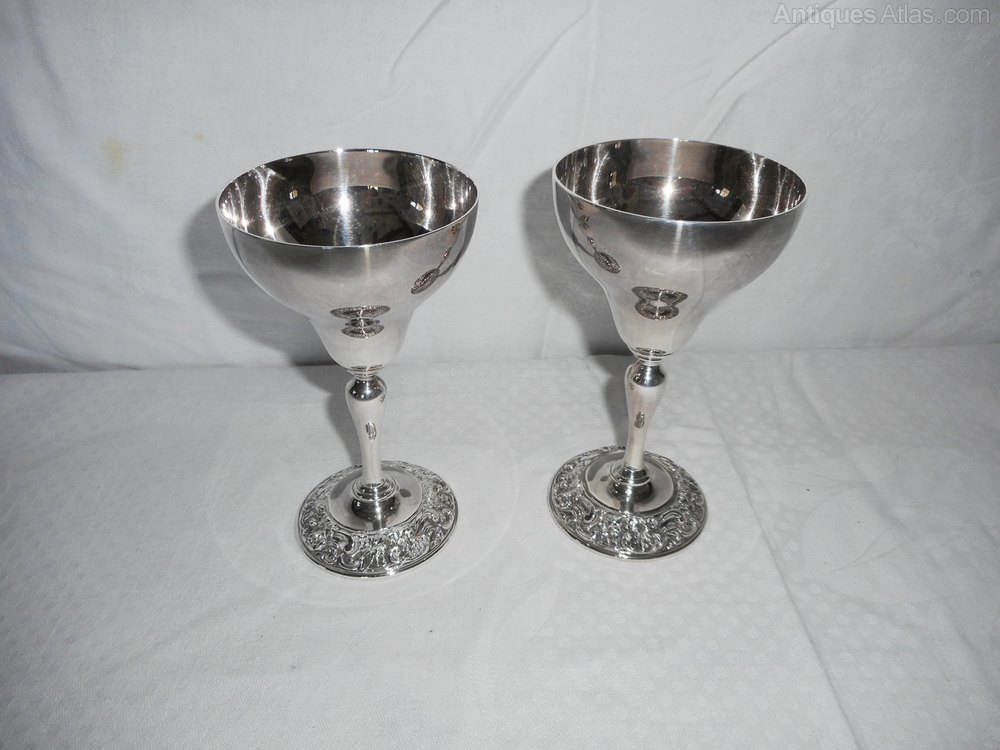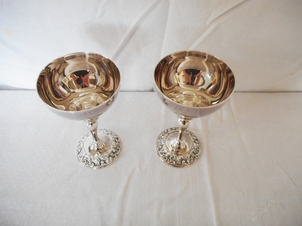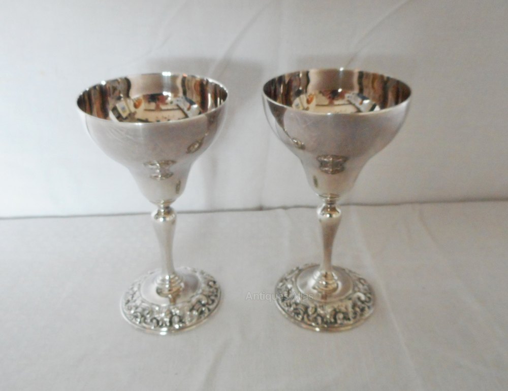 Pair of Vintage Boodle & Dunthorne Goblets.These elegant silver plated goblets have a decorated base & are back stamped with the Boodle & Dunthorne Liverpool stamp.