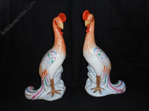 Pair of Vintage Chinese Export Peacocks.Hand painted, wonderful colours, impressive size.