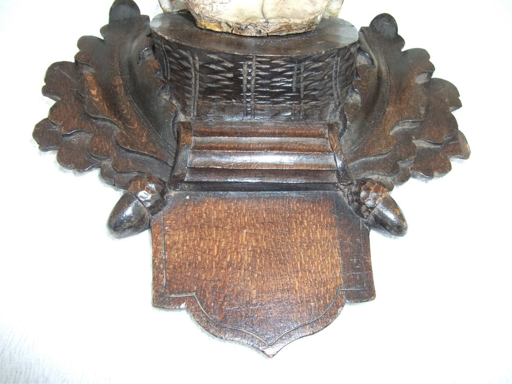 Rare Blackforest carved hunting trophy with Chamois Alpine Goat Horns.The unusual Oak shield is carved with oak leaves & acorns.