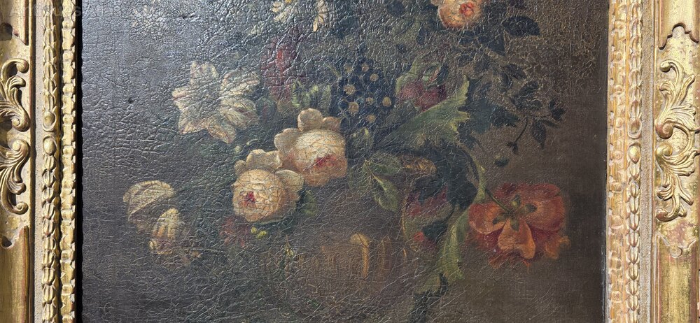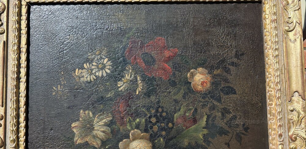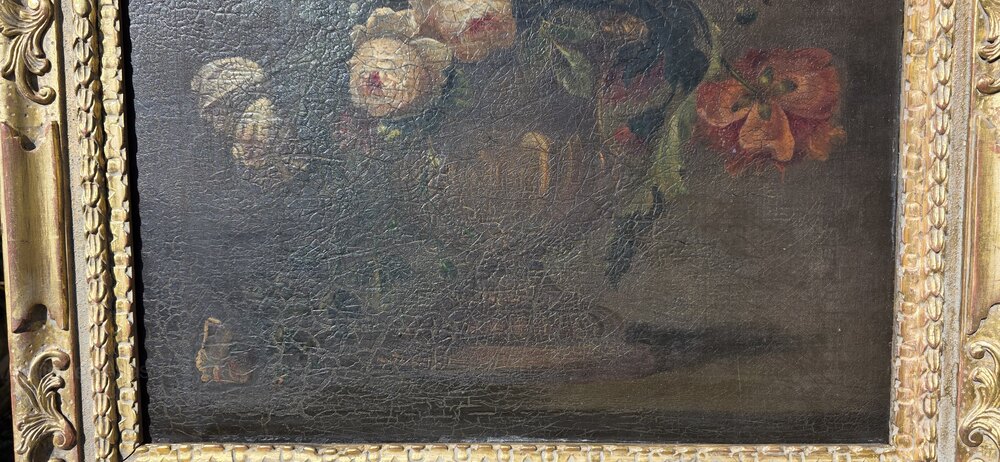 A 19thc oil on canvas,still life of flowers in a vase.In a composition gilt frame.Date19th Century :