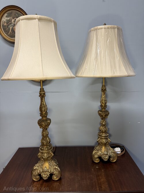 A Pair Of Gilt Brass Table Lamps