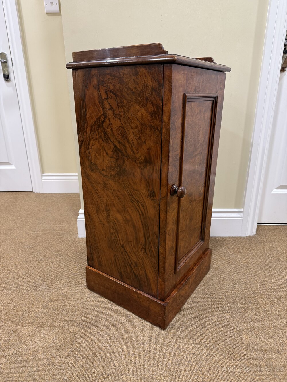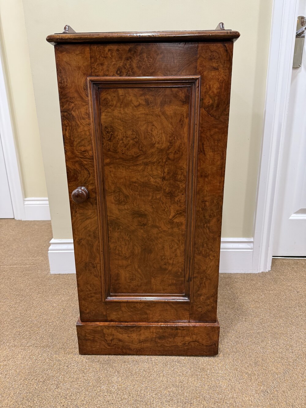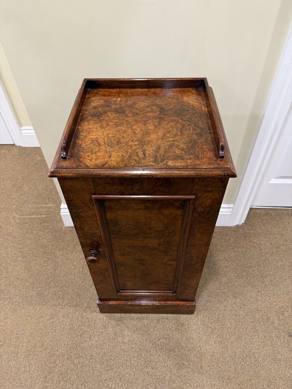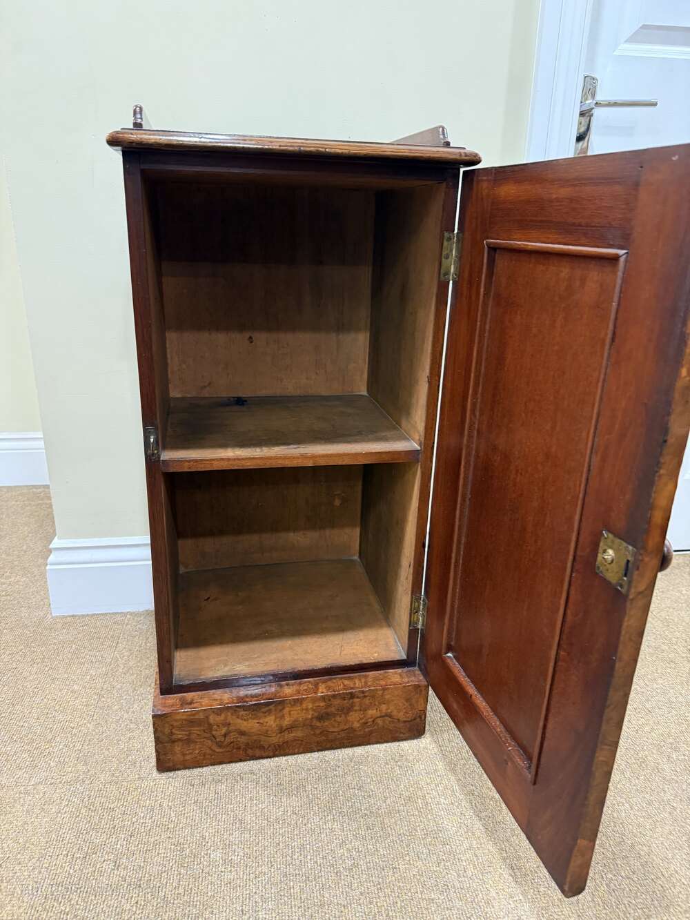 This Victorian burr walnut cabinet with three quarter gallery top with panelled door open to a single shelf. The wood has wonderful warm tones.Date19th Century